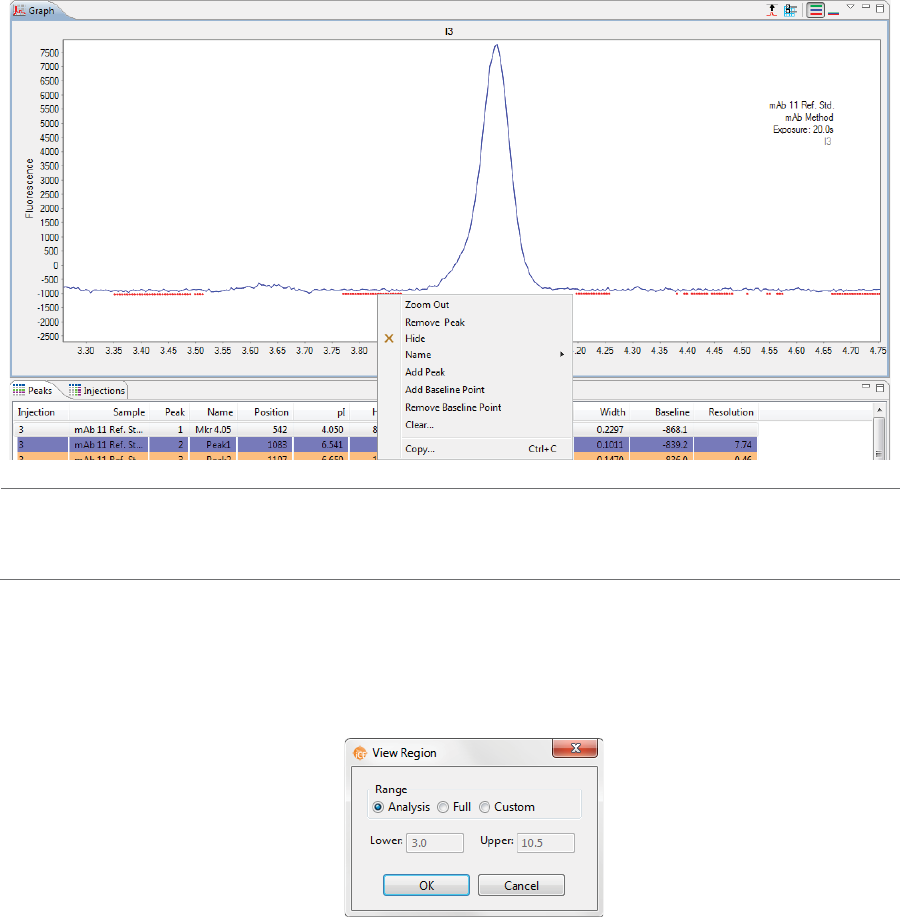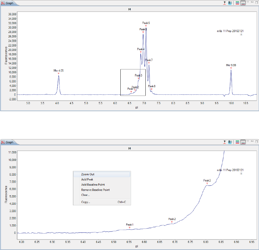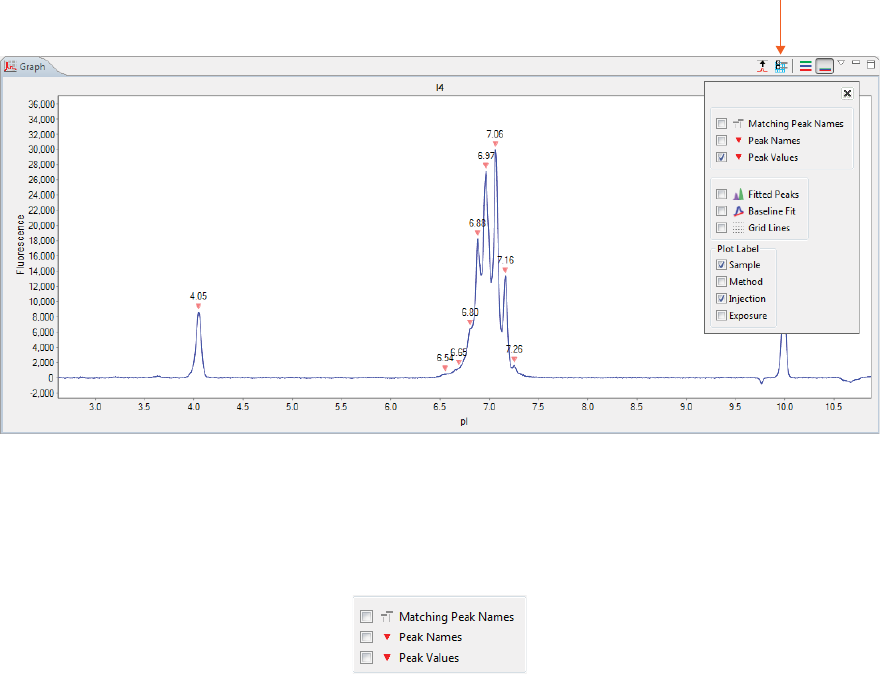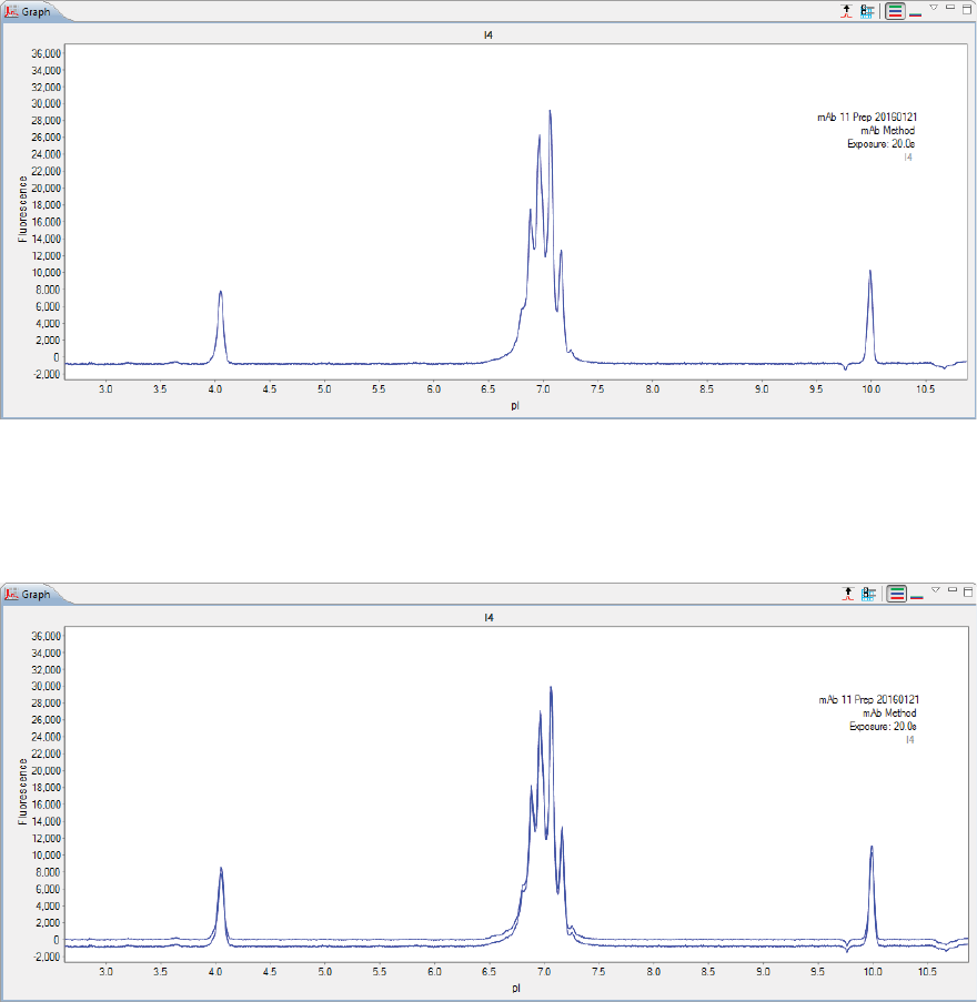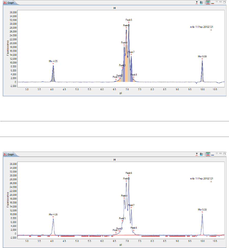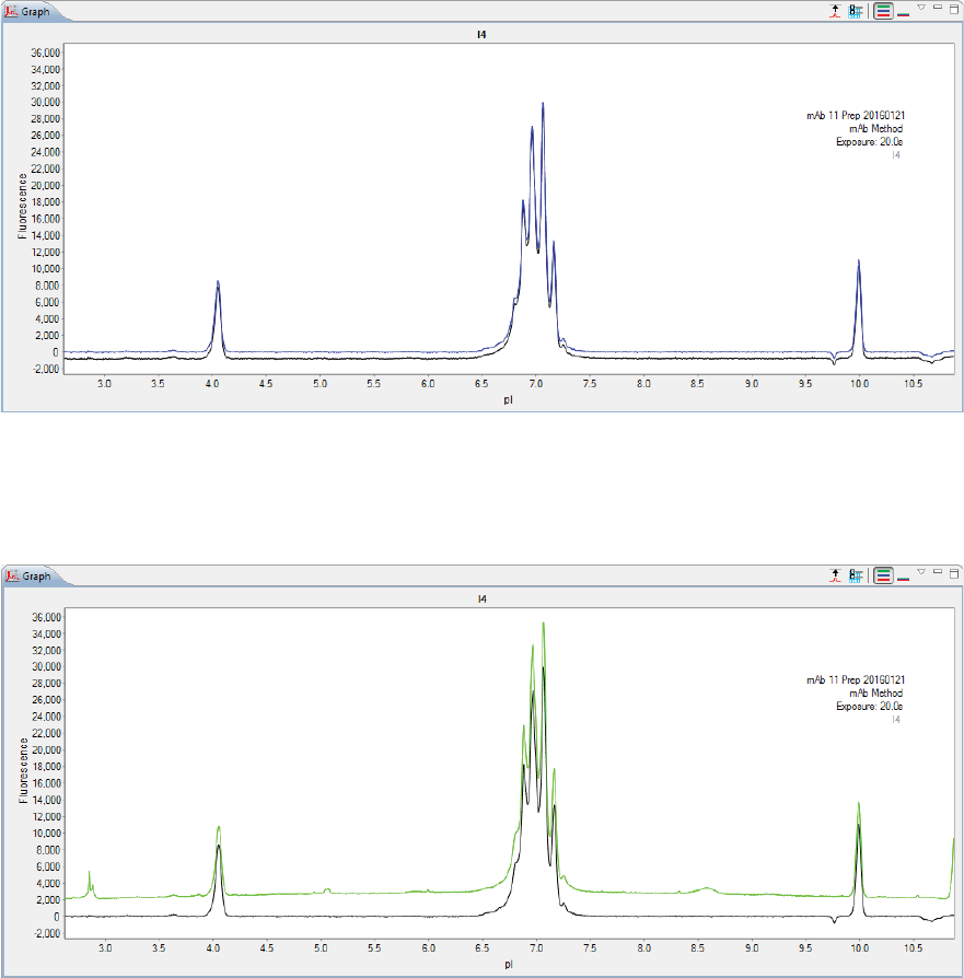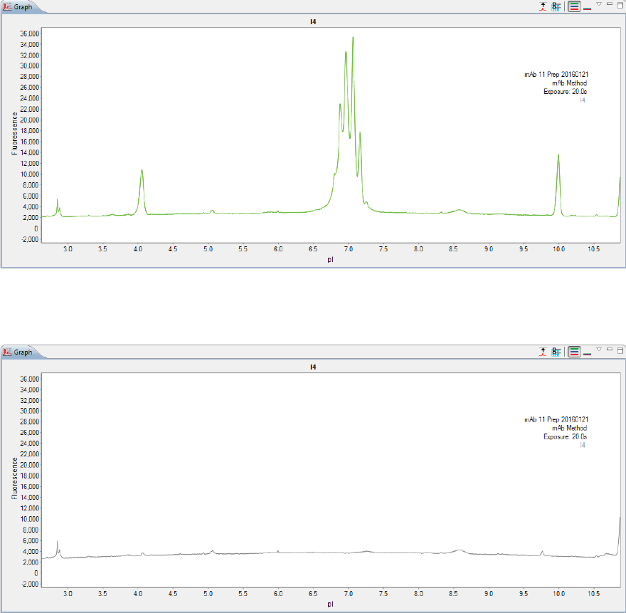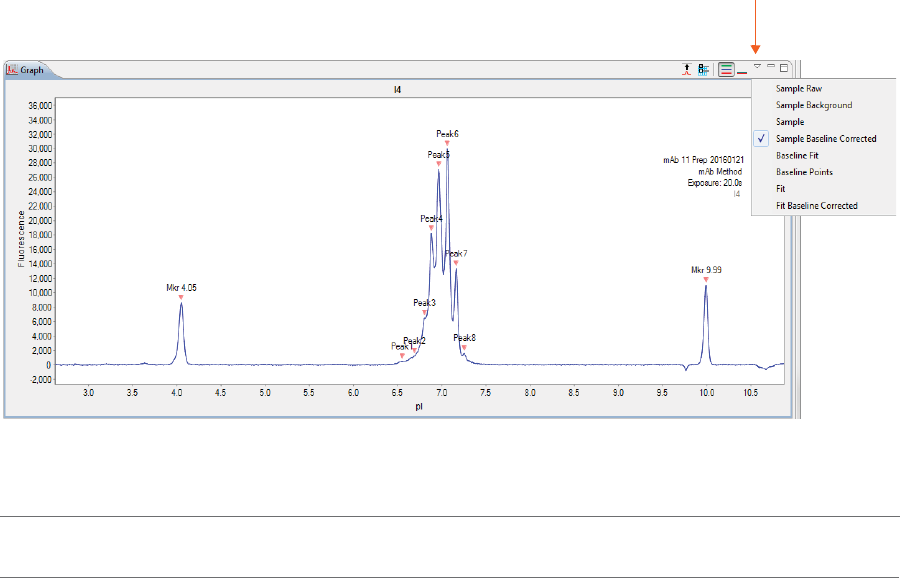•Graph - Displays the electropherograms for sample proteins or pI markers.