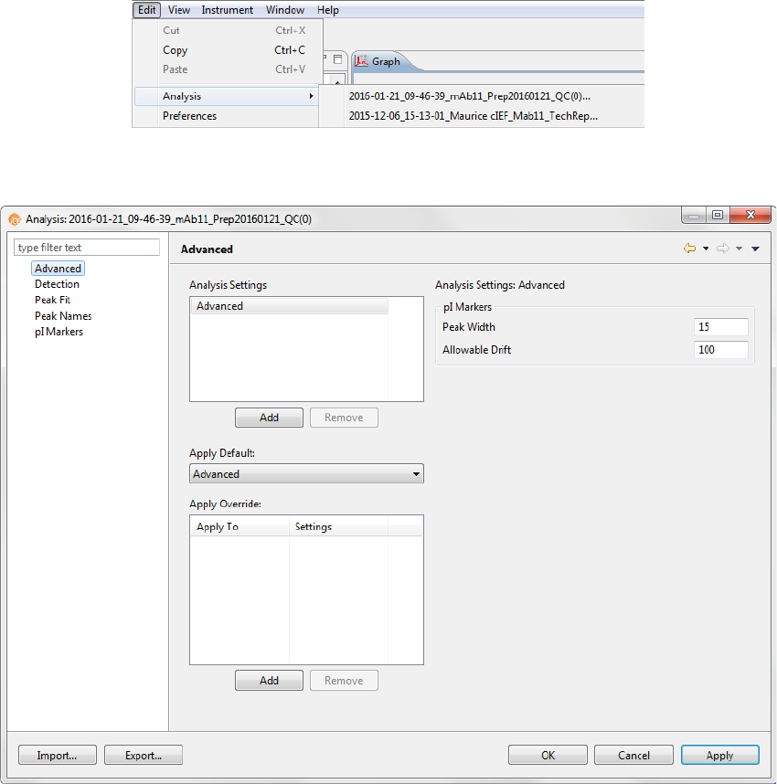• Importing and Exporting Analysis Settings