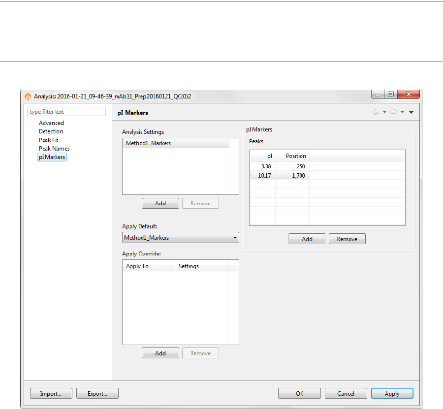 • pI Markers Analysis Settings