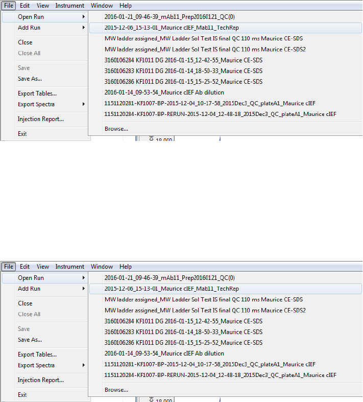 4. A list of cIEF runs will display. Select one of these runs or click Browse to open the Runs folder and select