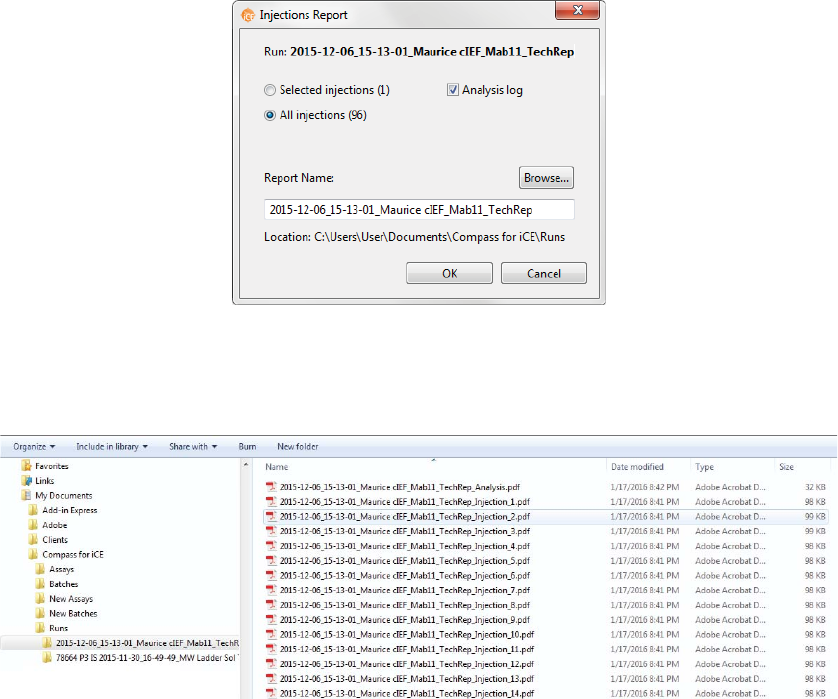 individual injections as PDF files. You can also export the run history with all analysis events.
