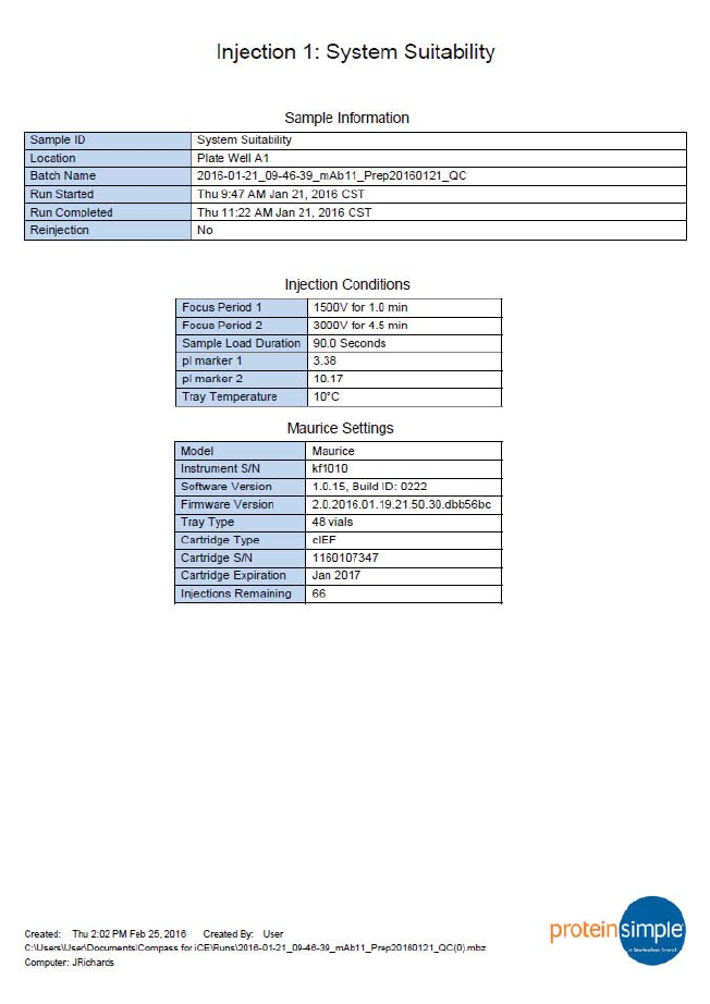 •Injection Report - Exports the raw and analyzed data, IV plot, peaks table, sample and system info for