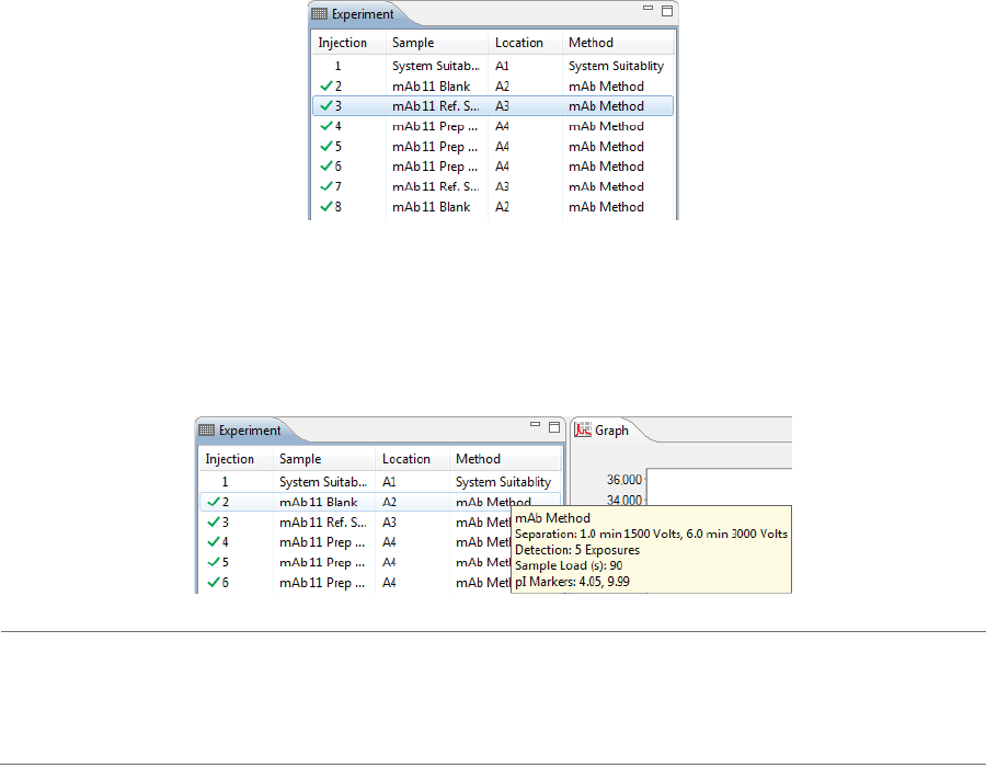 •Experiment - Lists the injection number, sample IDs, sample locations and methods for each injec-