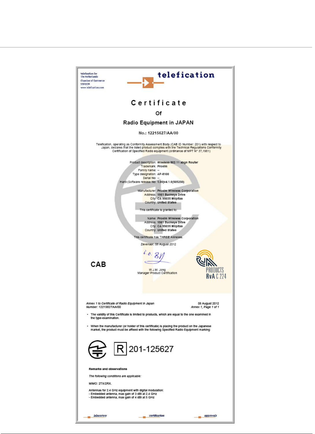Proxim Wireless Corporation Wireless 802.11 abgn Router Safety and Reg