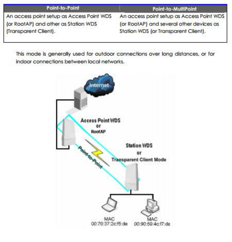 Station WDS is mainly use for point-to–point connection between 2 buildings
