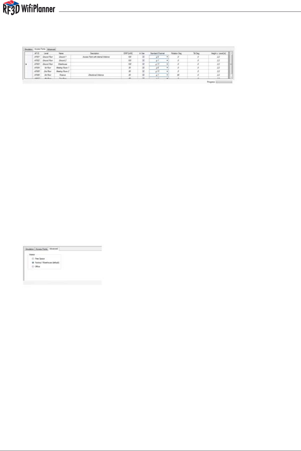 RF3D WifiPlanner uses theoretical principles to calculate signal distribution. The  net-