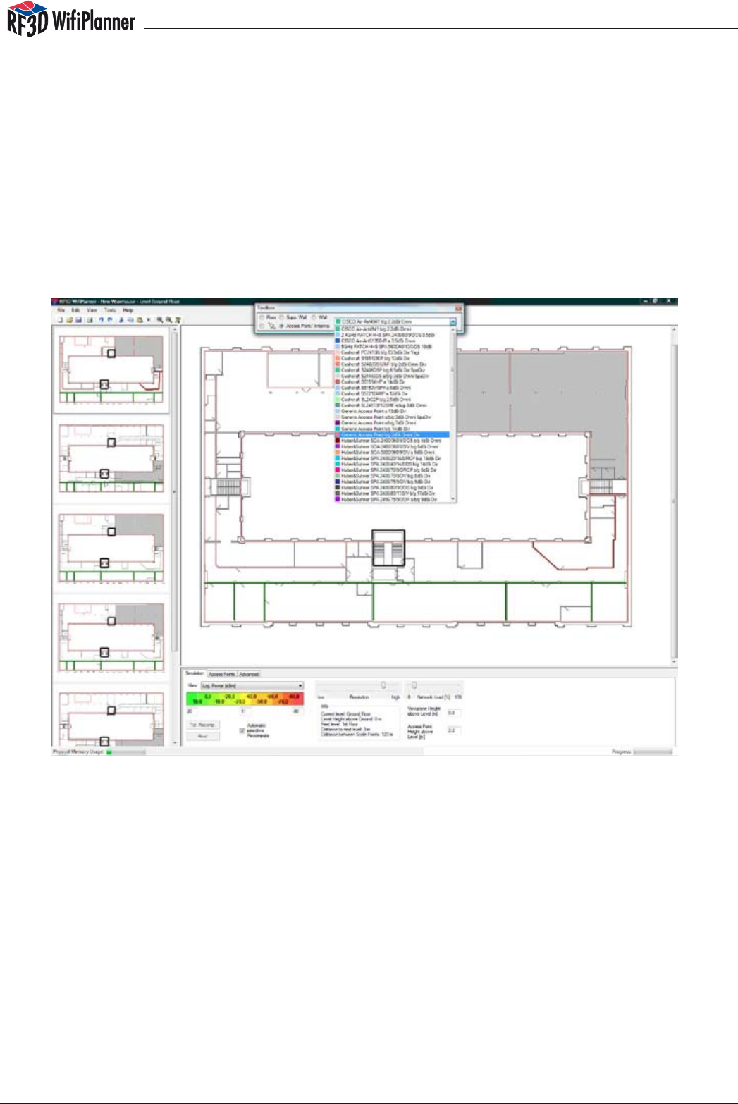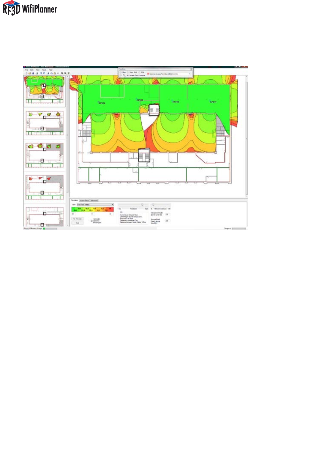 RF3D WifiPlanner  provides  true  three-dimensional  simulation of radio signal distribu-