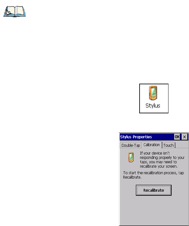 ibrated or if you find that the stylus pointer is not accurate when you tap on an item, follow
