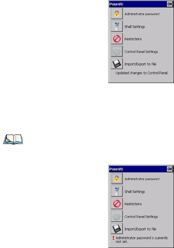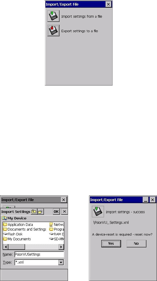 default name PsionVU_Settings.xml, which the Administrator can change even after it has