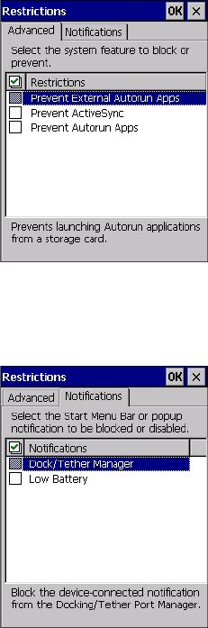 hidden or accessible. Any applet that can’t be set is greyed out.