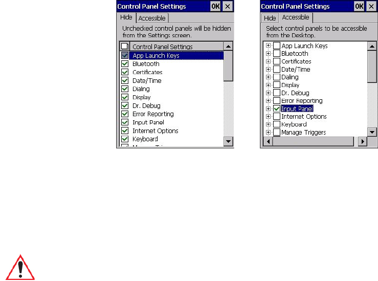 In these menus you can set which applets and tabs you want to Hide in Control Panel, and