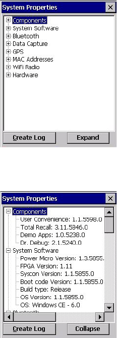 • You can create a log (SystemProperties.xml) of your current components, which will be