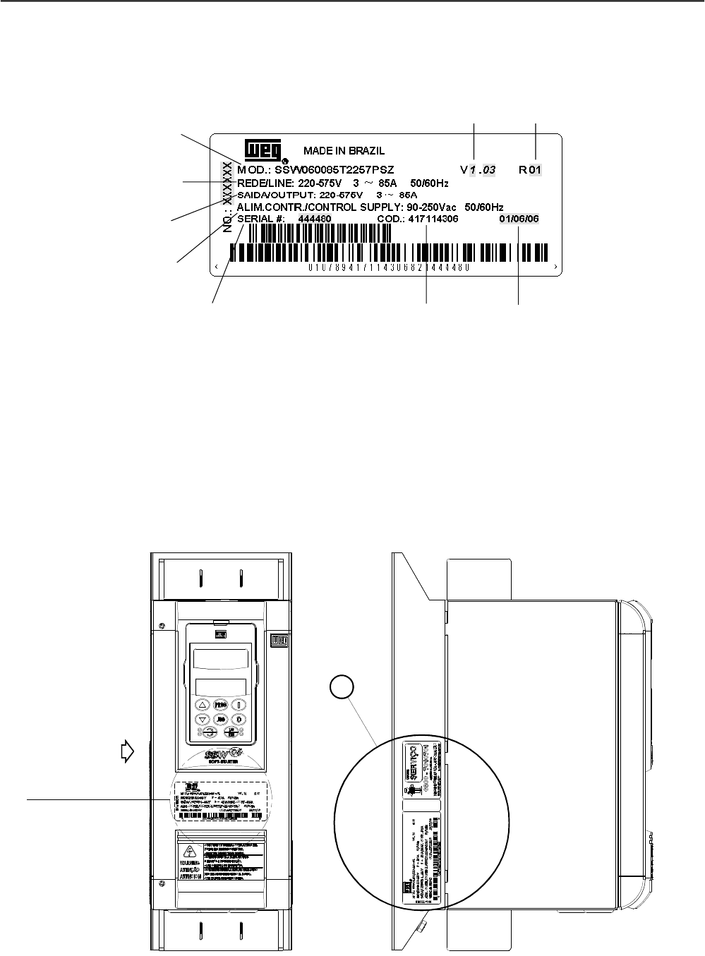 2.4 Soft-Starter SSW-06 Identification .................................................. 23