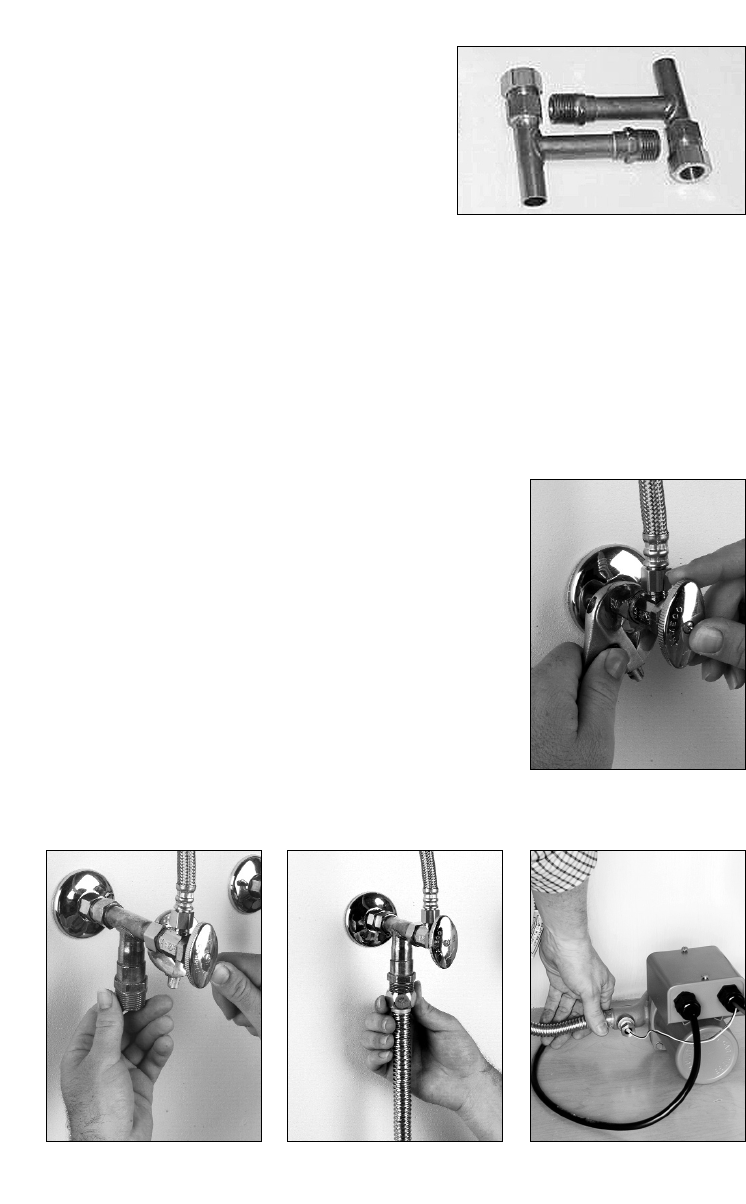 6. Attach the stainless steel flex lines to the 1⁄2" threaded