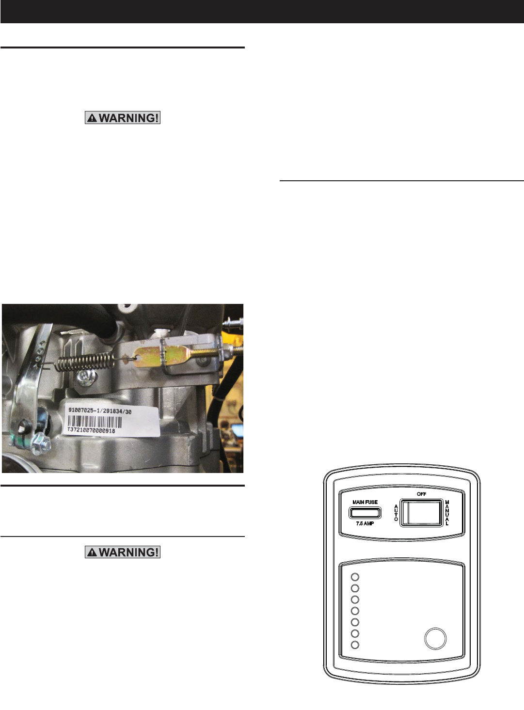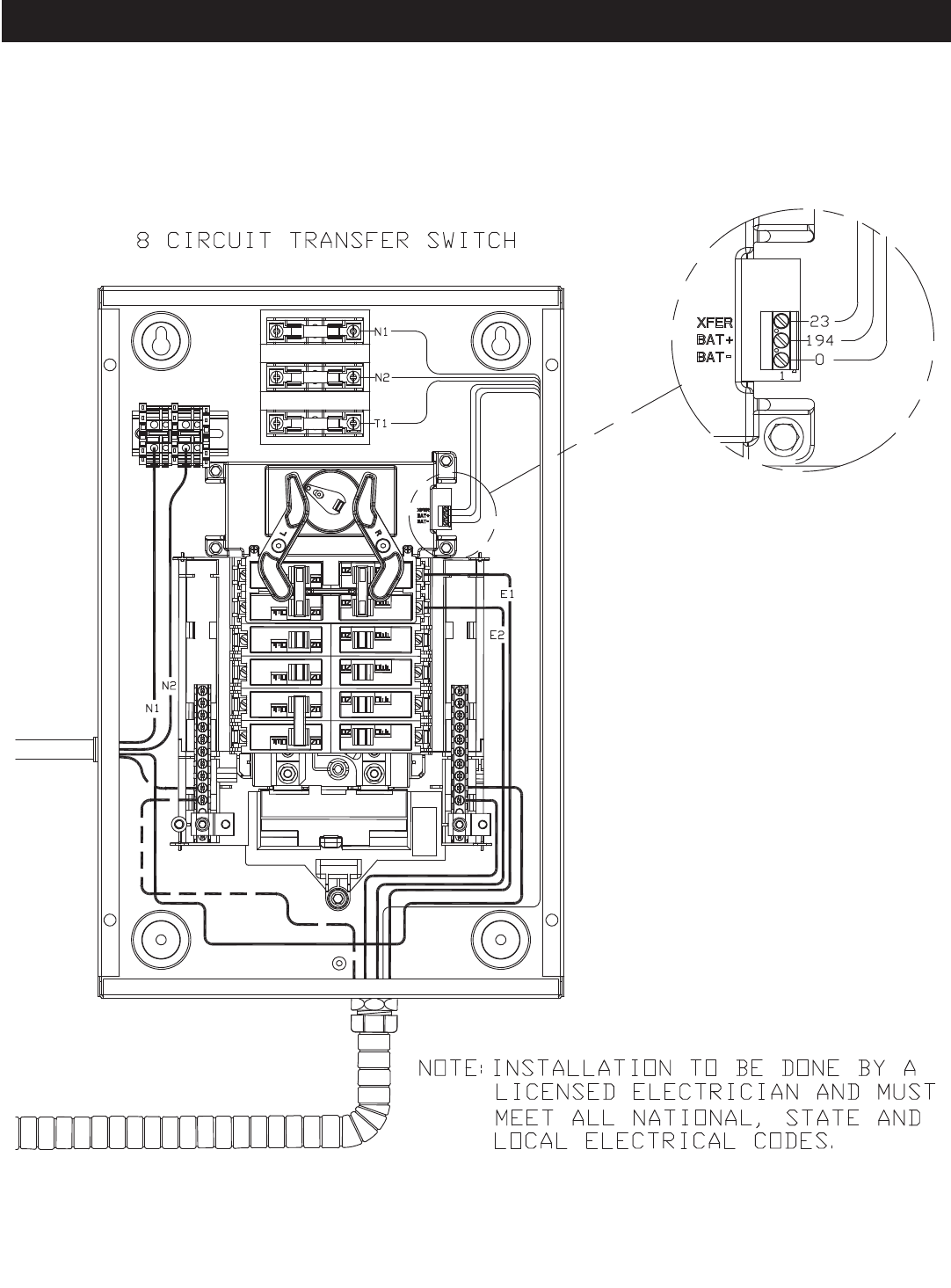 6. L'utilisation d'un commutateur de transfert fabriqué par Power Systems, Inc. pour le générateur est recommandée. Aucune garantie ne sera prise en compte en cas