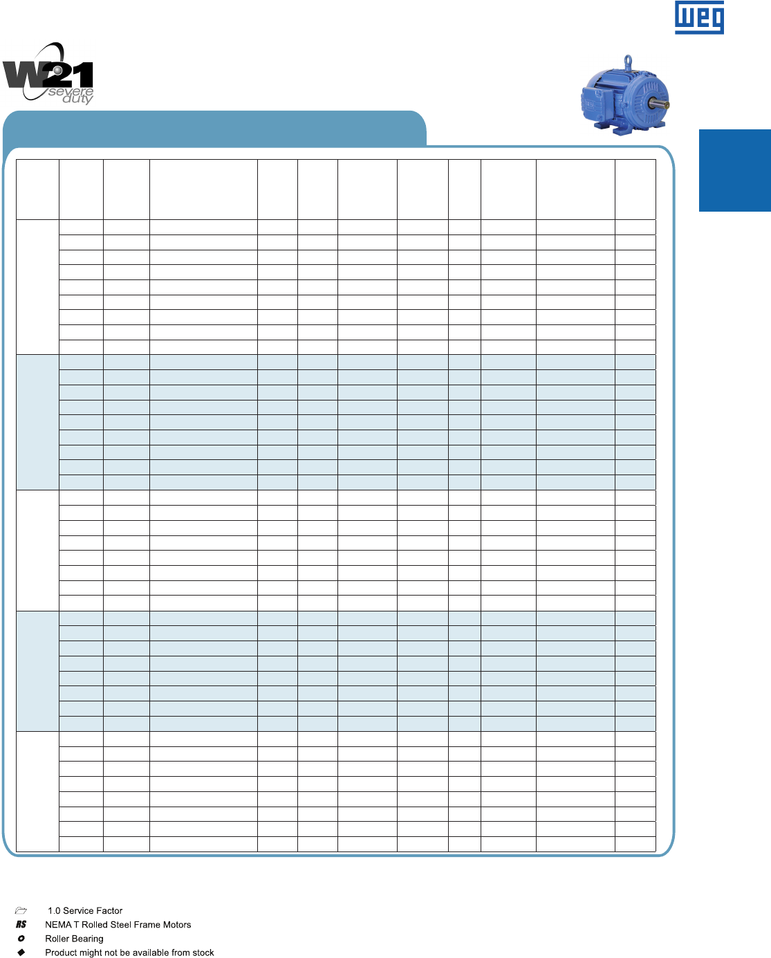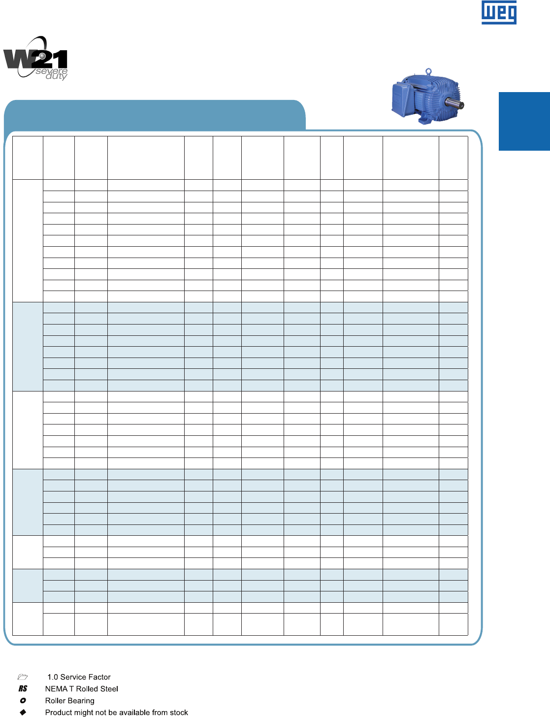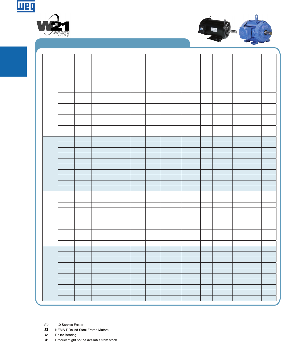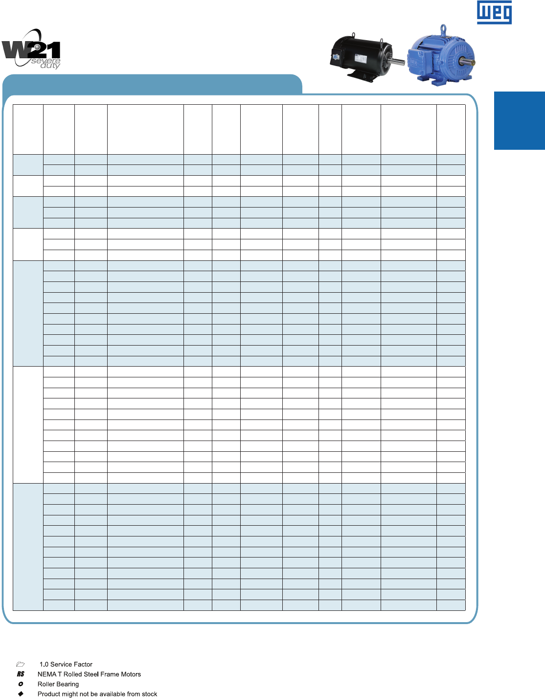 TEFC – NEMA 56 FRAMES – THREE-PHASE MOTORS INDEX – W21 HIGH EFFICIENCY
