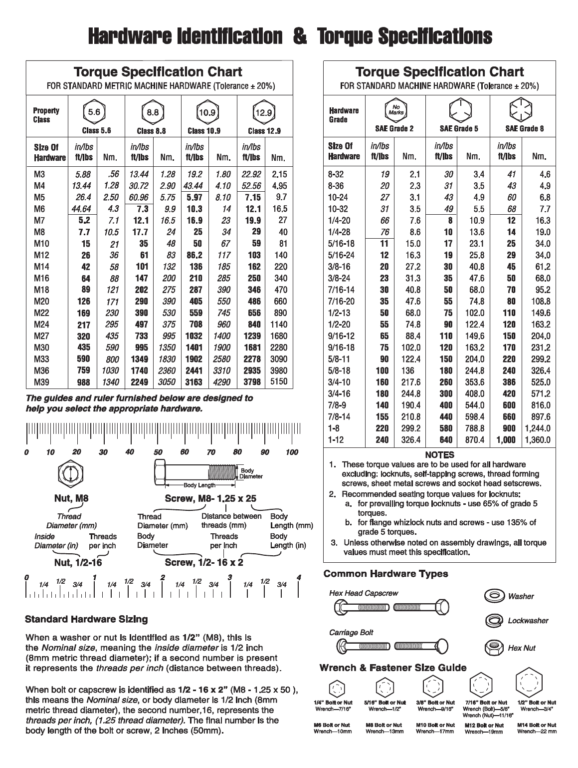 Torque Specification Chart ..................................................................... Inside Back Cover