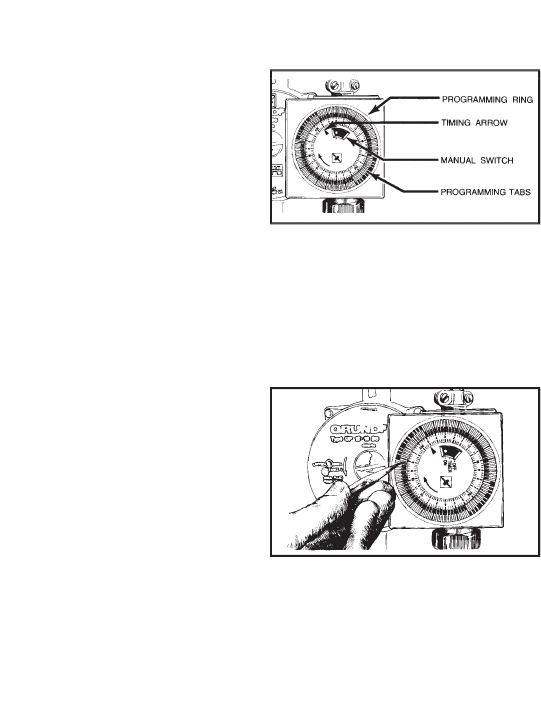 1. Set the timer switch to the actual time by turning the programming ring in the