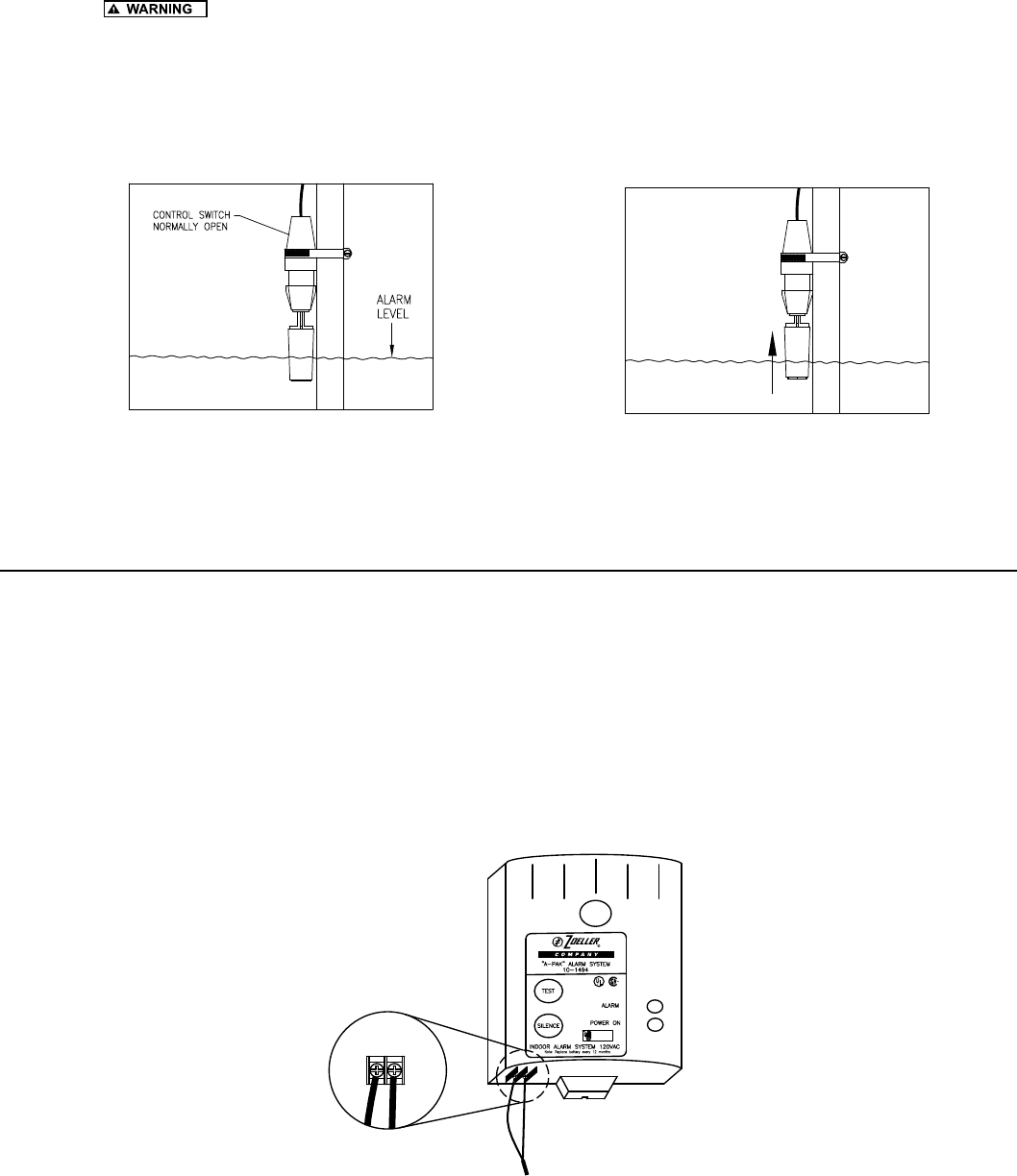 same circuit as the pump. The “A-Pak” Alarm System should be connected to a circuit separate from the pump circuit.