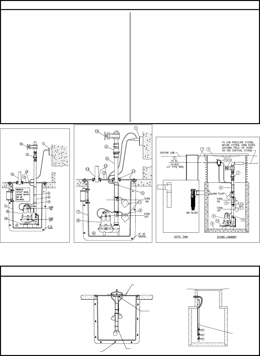 ¾".) Where codes permit, sewage pumps can be used for effl uent systems. Nonautomatic pump(s) with external level control recommended for septic tank effl uent applications.