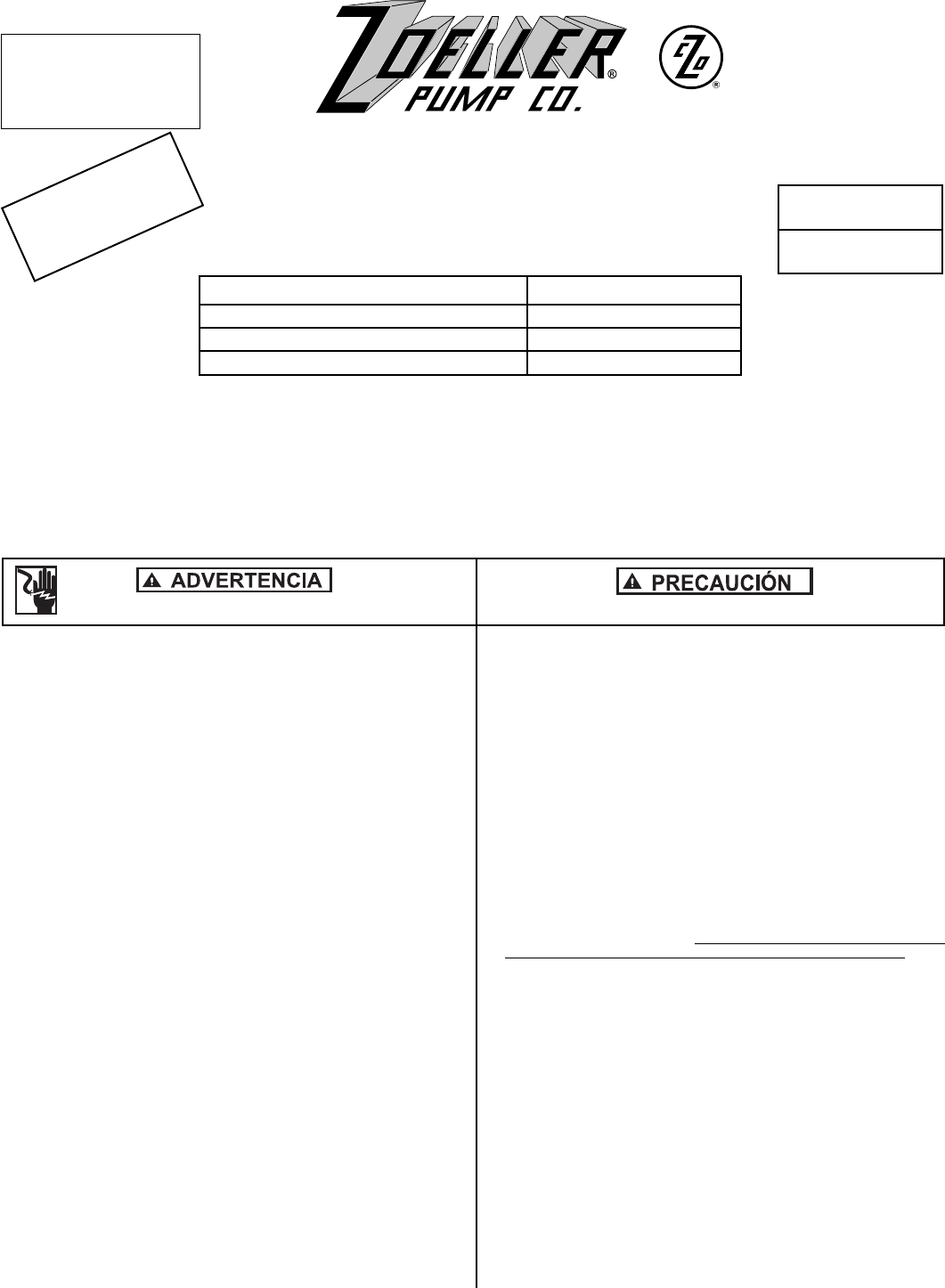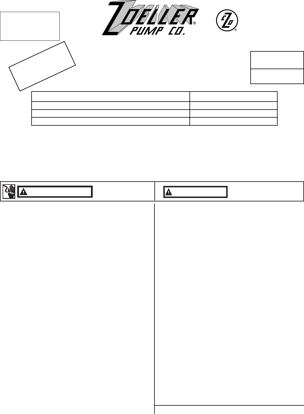 User Manual: Pump 3955 2 Zoeller 267-0057 Product Instructions