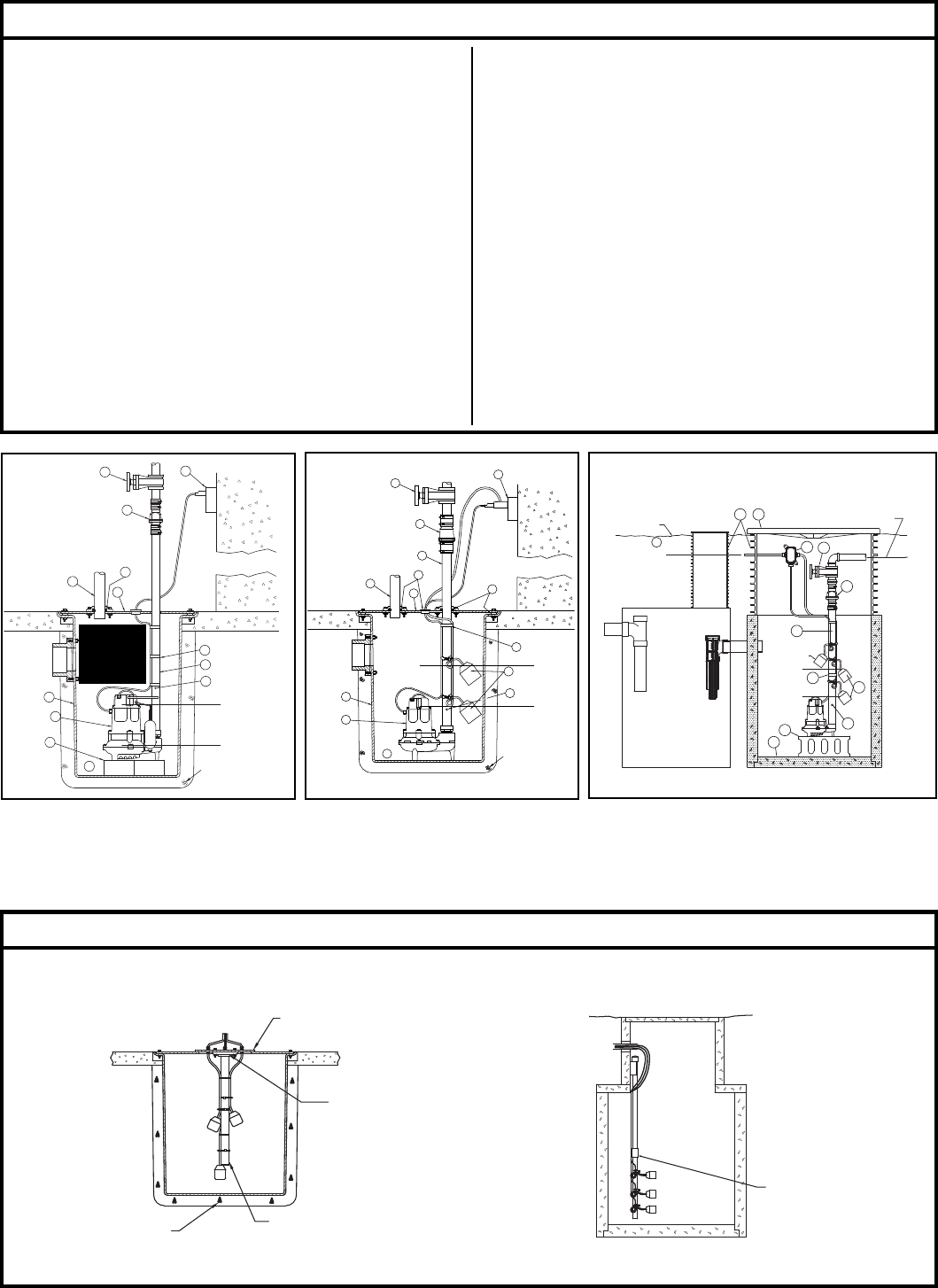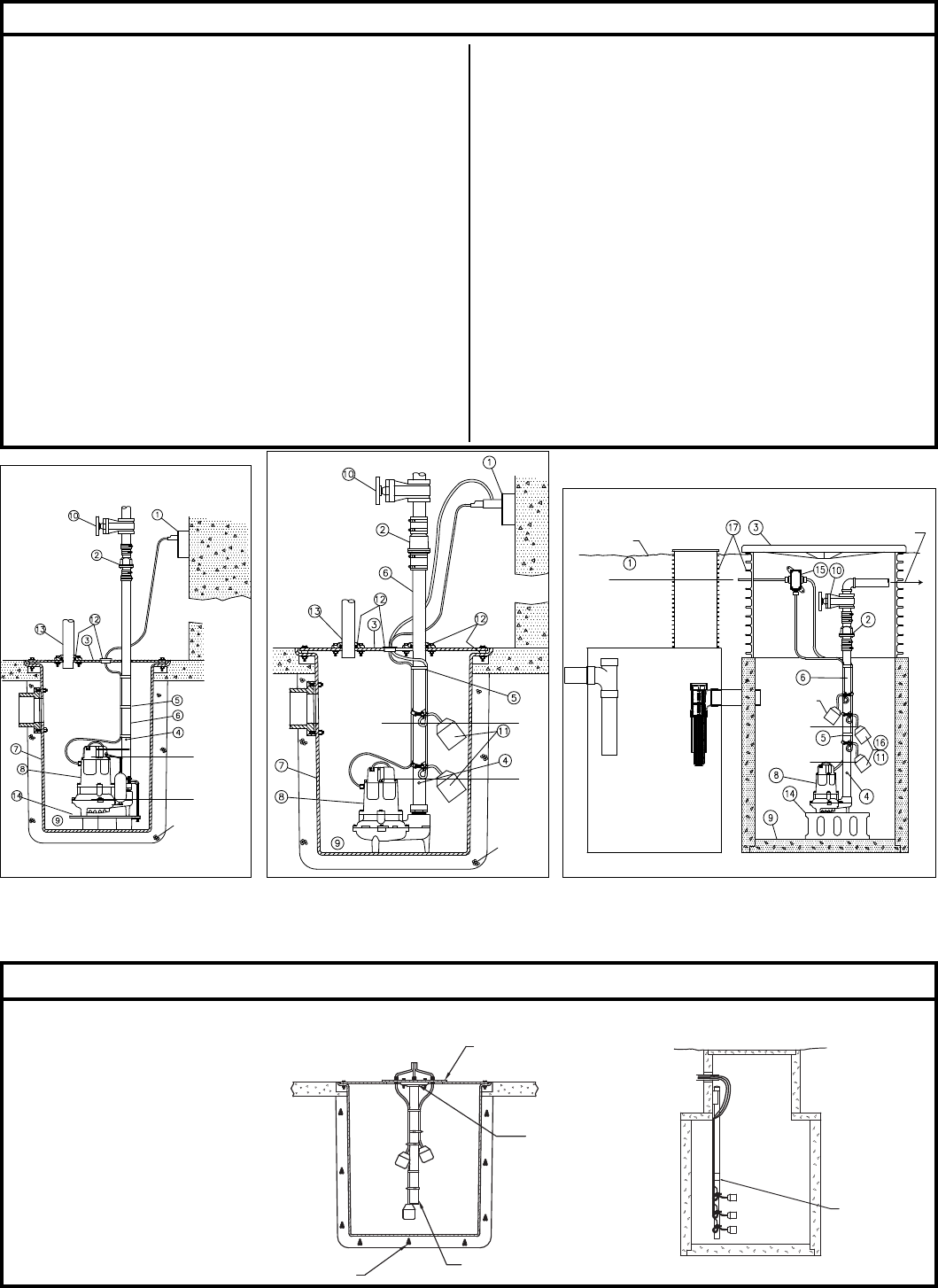 2. The installation of automatic pumps with variable level fl oat switch es or nonautomatic pumps using