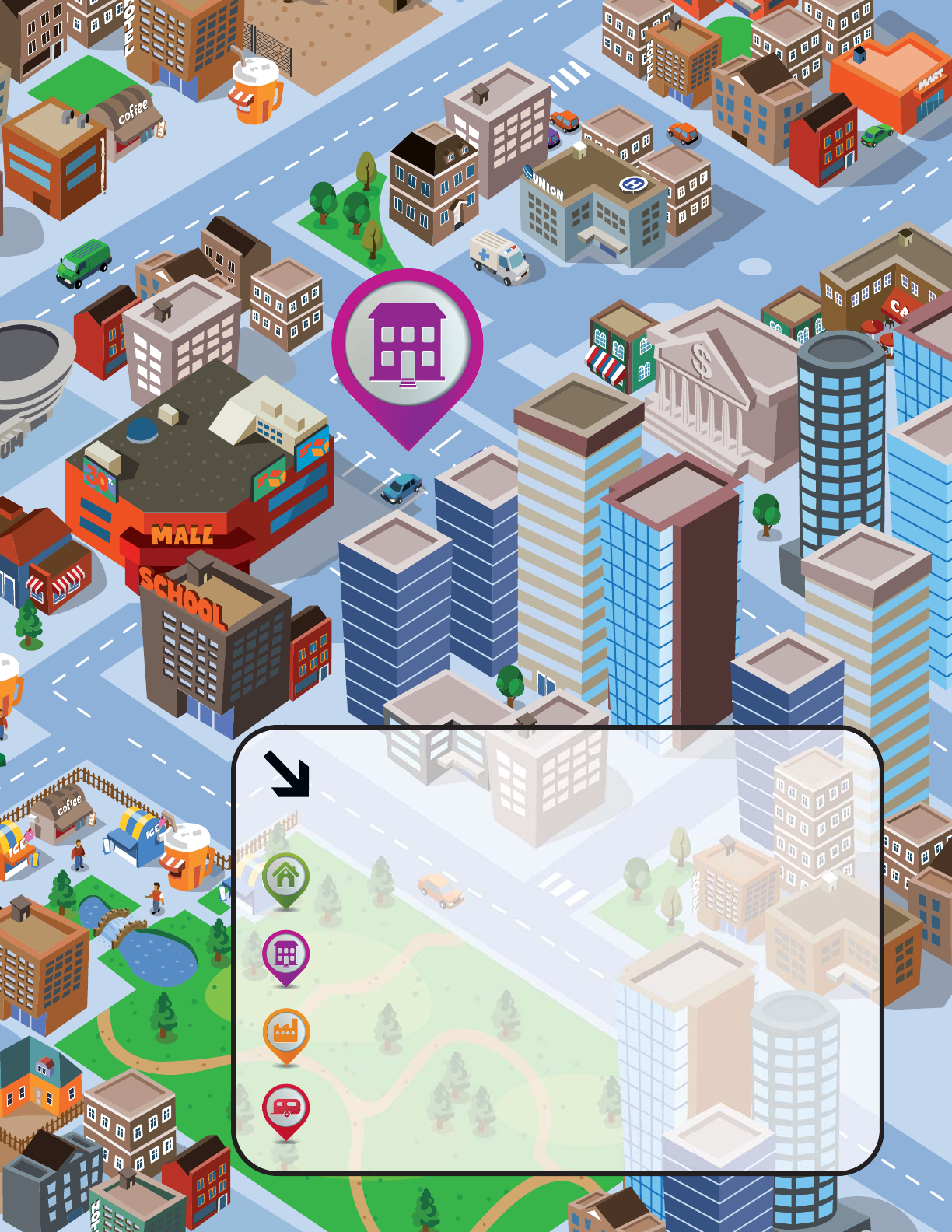 Various restaurants, hotels, bars, spa centers, business offices and also public buildings such as