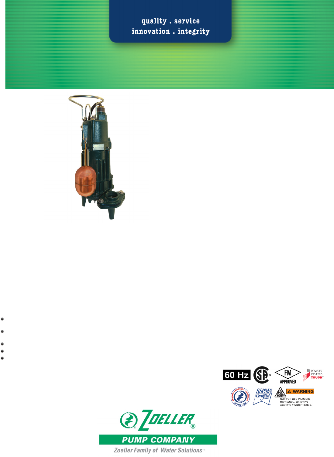 Product information presented here reflects conditions at time of publication. Consult factory regarding discrepancies or inconsistencies. Copyright Zoeller Company. All rights reserved.