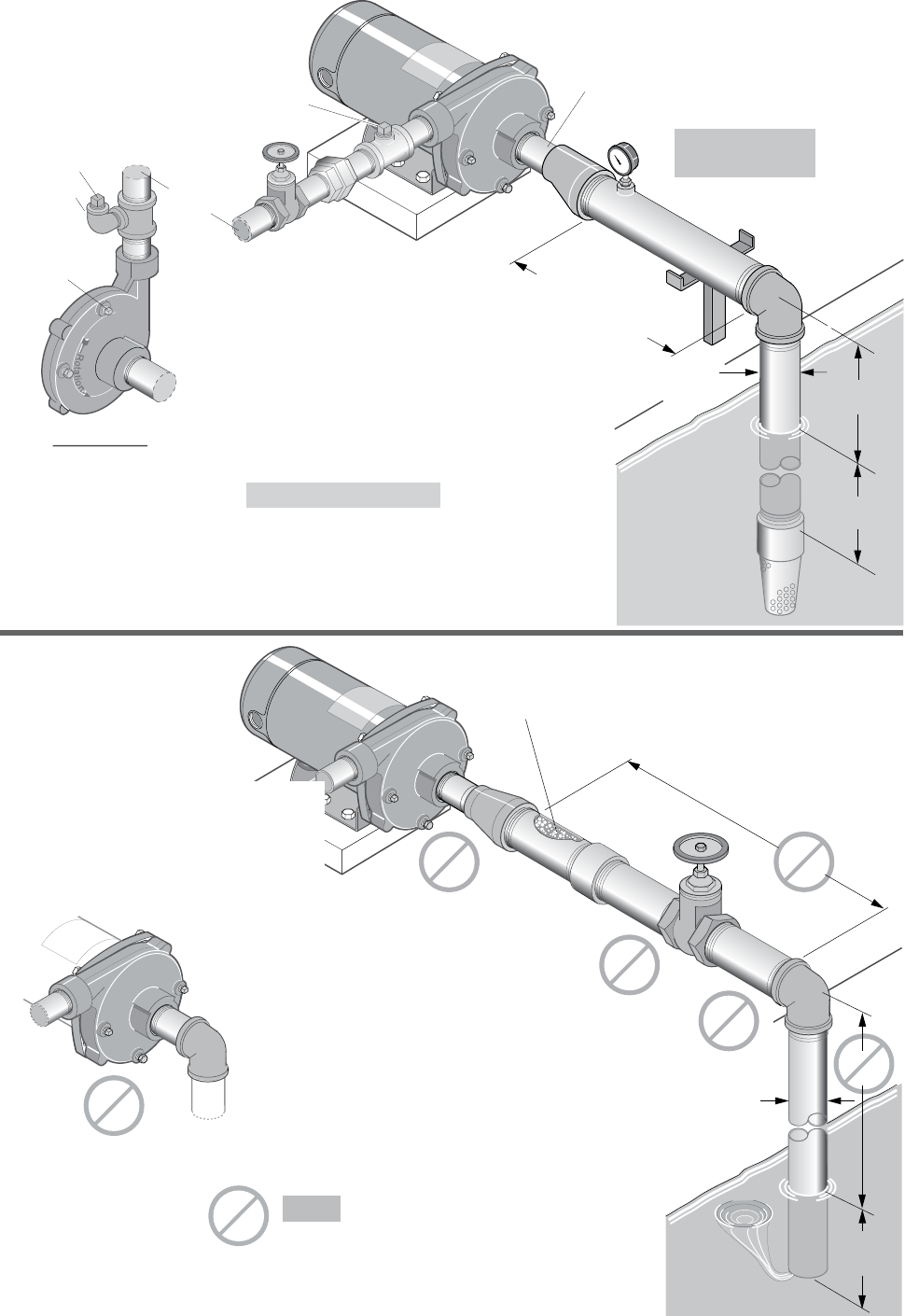 2. Excessive suction lift and operating 2. Move pump nearer to water level.