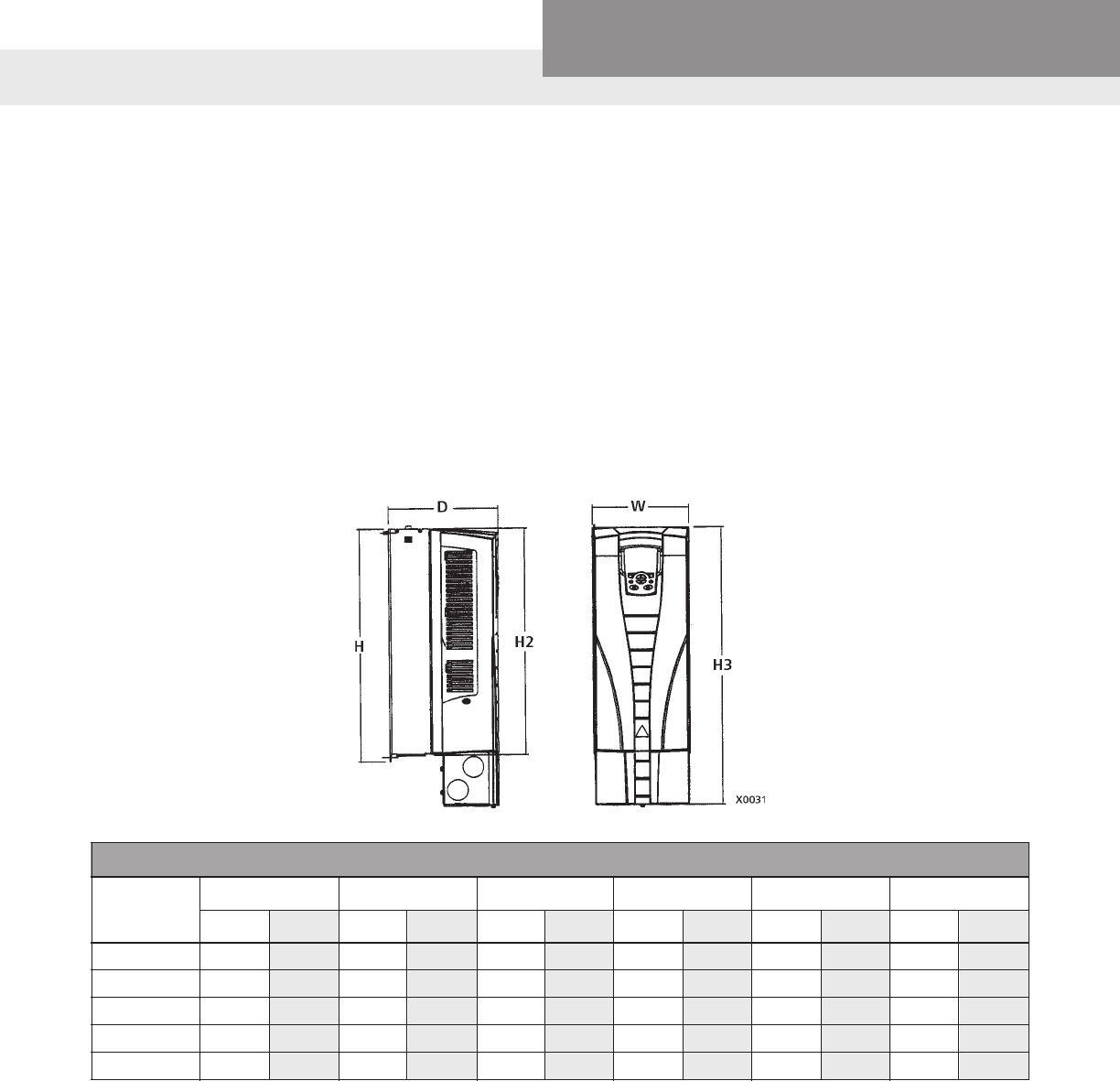 • 1 – 200 HP (frame R1 – R6) wall mounted; 250 – 550 HP (frame R7 and R8) oor mounted.