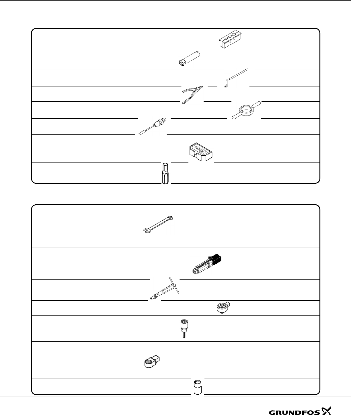 In addition to being available from Grundfos, comparable tools can be purchased through normal sources.