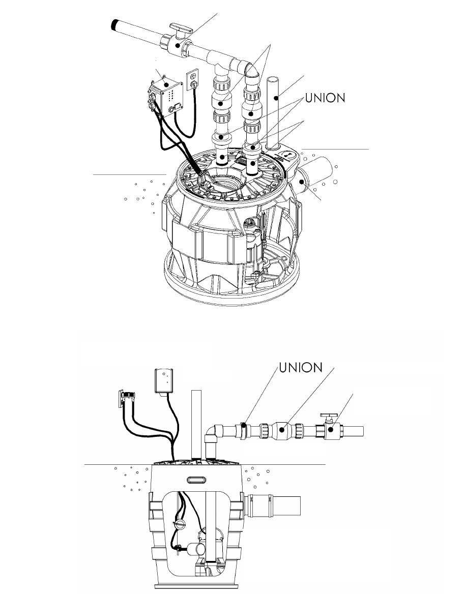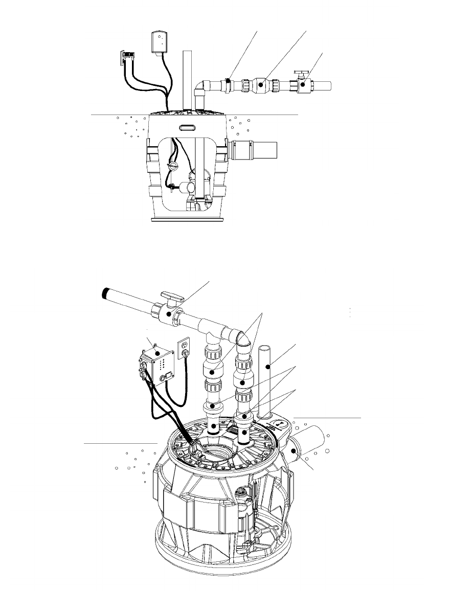 2. Si le dessus du bassin de la série 370XL, 380XL, ou 680XL est enfoui sous le niveau du sol, un tuyau d’élévation d’accès (modèle