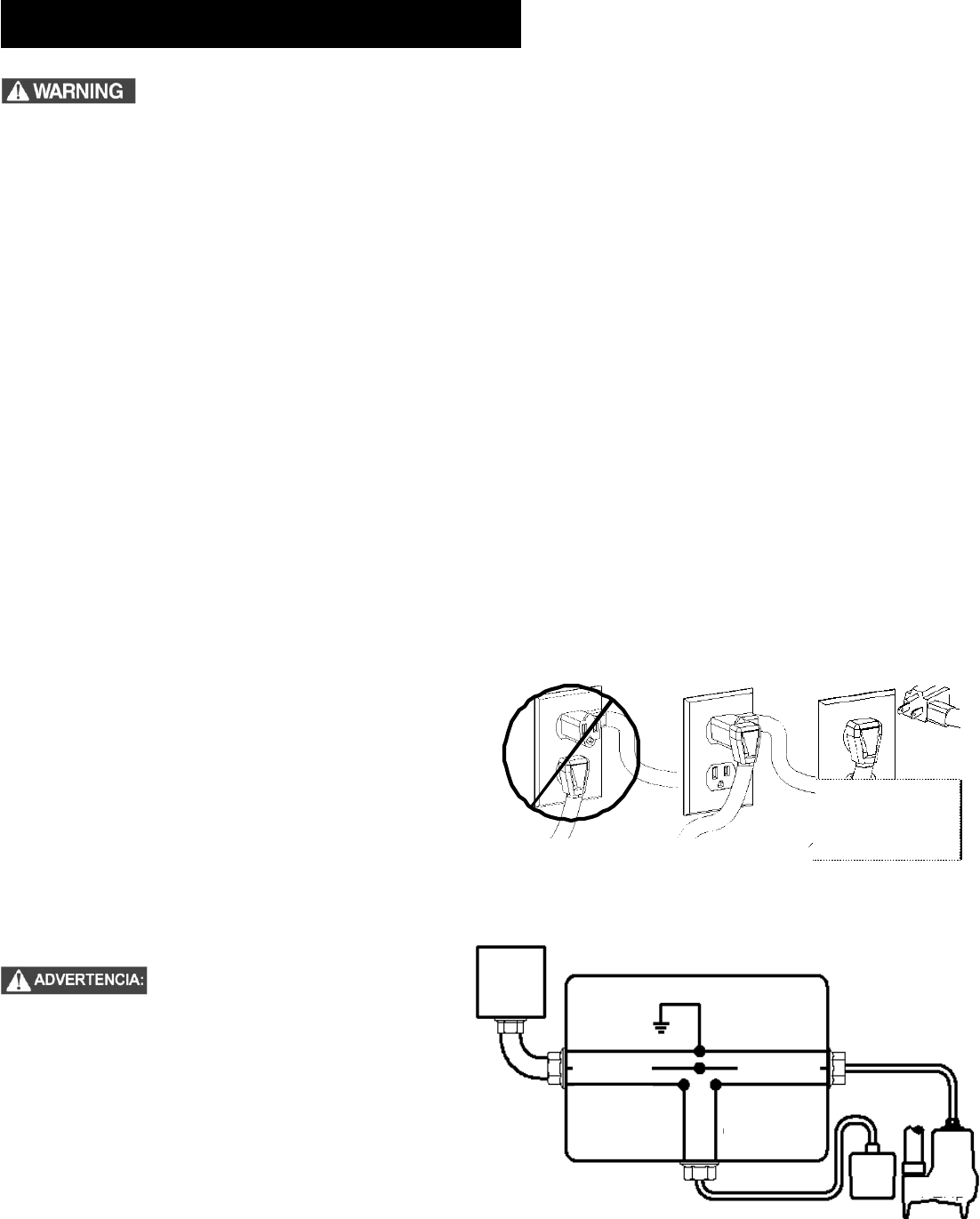 This pump is supplied with a grounding conductor or a grounding-type attachment plug. To reduce the risk of electric shock,