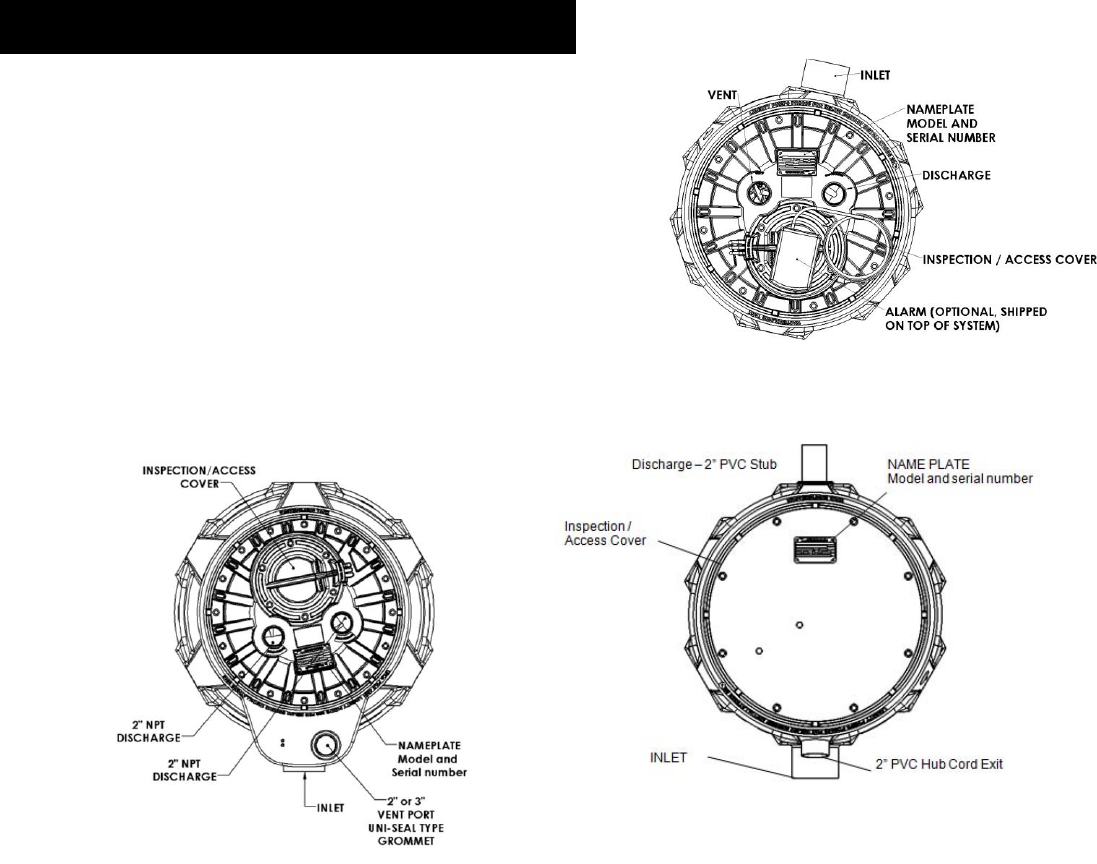 Side discharge systems will have SD attached to the pump model. “P382LE41SD-2, P382LE51SD-2/A2W, …”