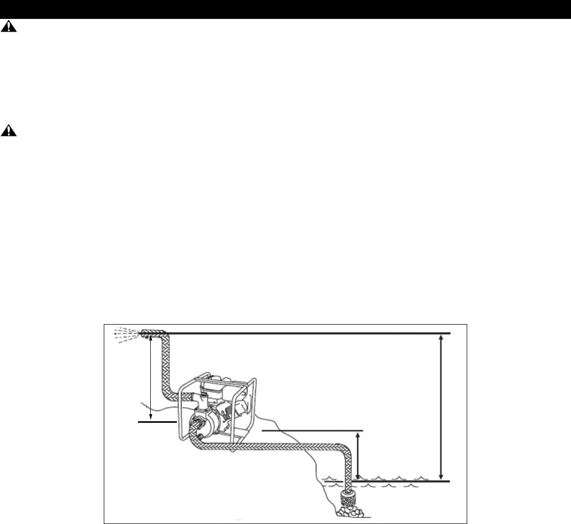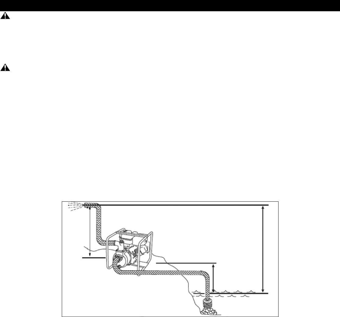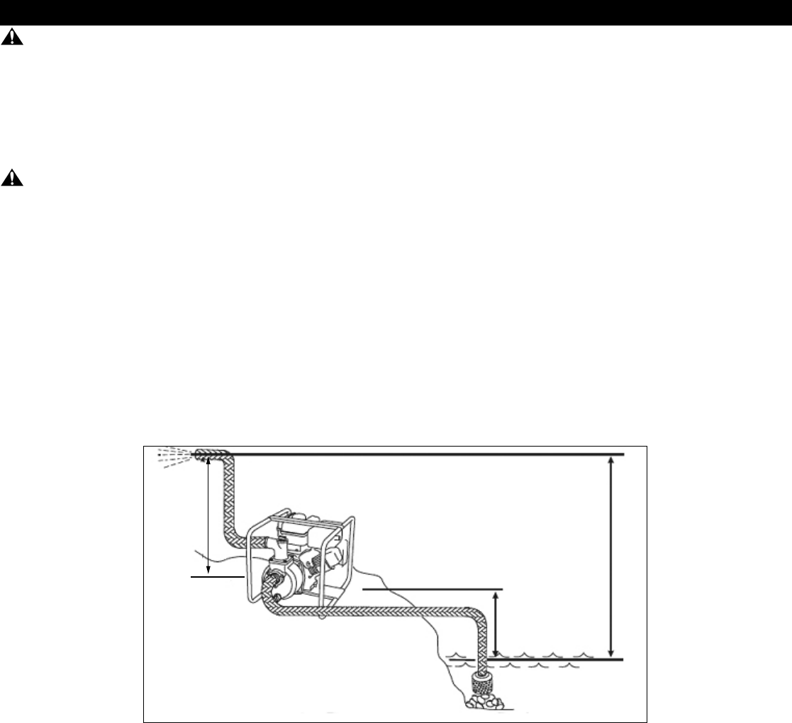 e) SUCTION HOSE: If the suction line runs generally vertical, use