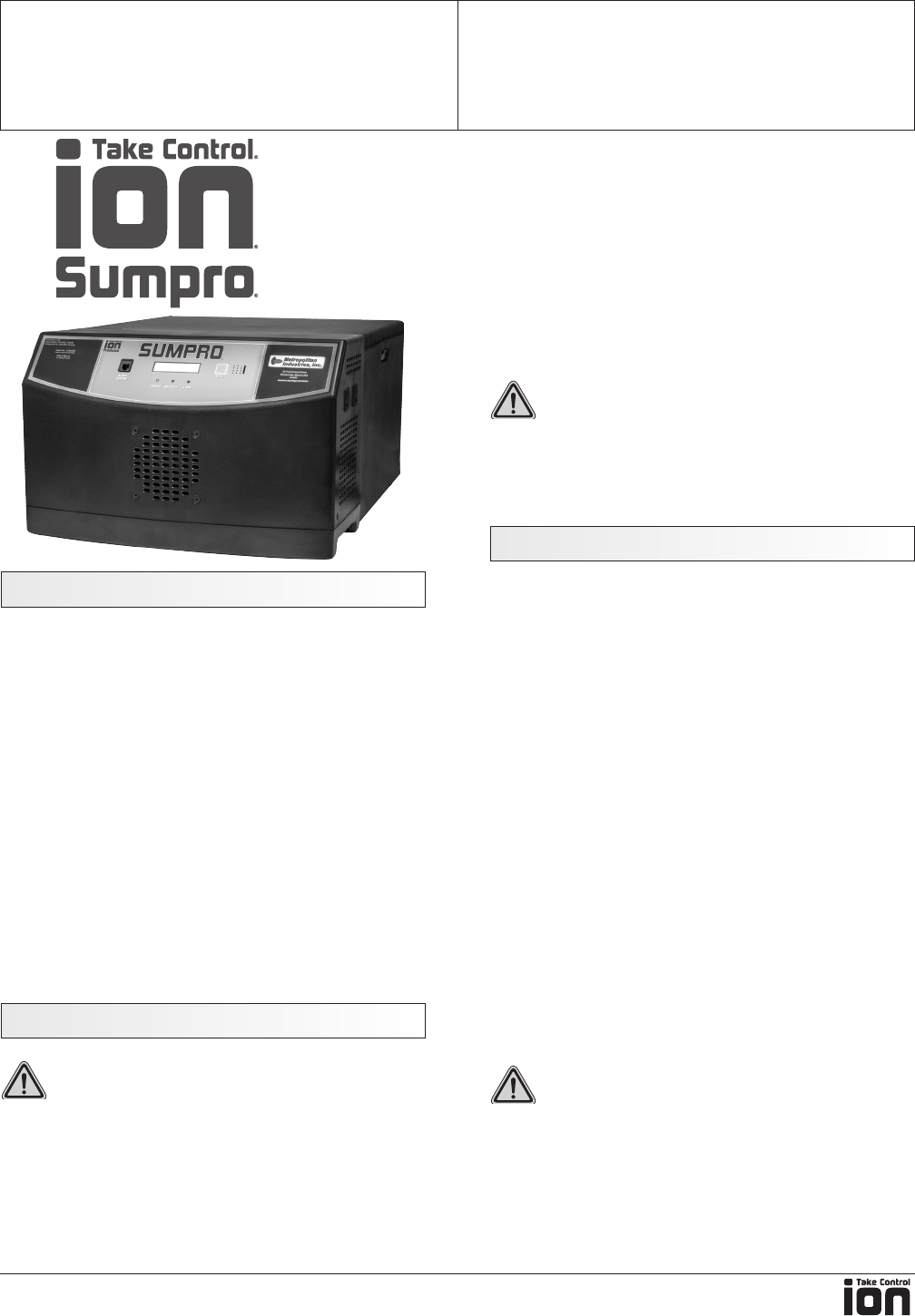 549629 2 Ion Sumpro 100 Battery Backup System Operation Manual