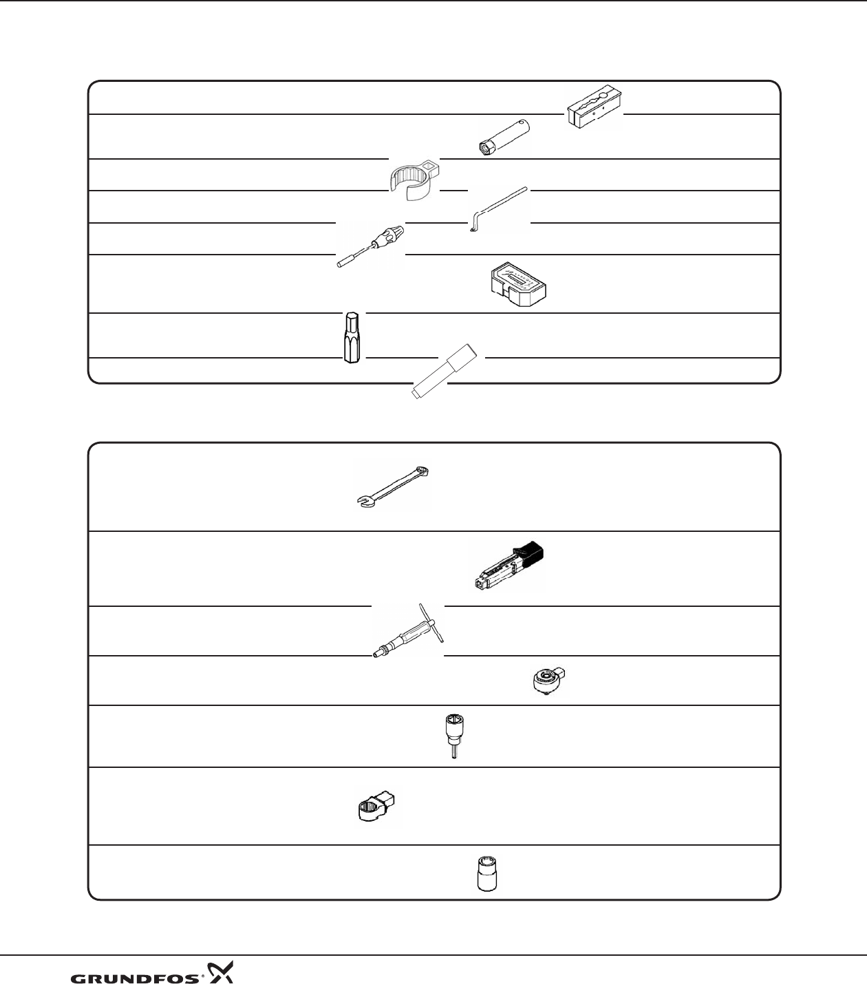 In addition to being available from Grundfos, comparable tools can be purchased through normal sources.