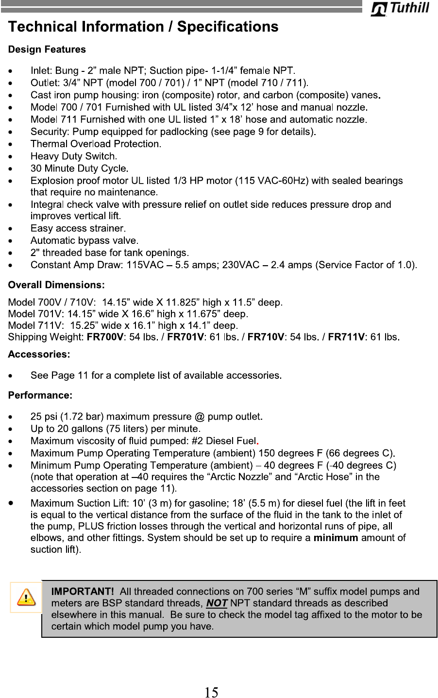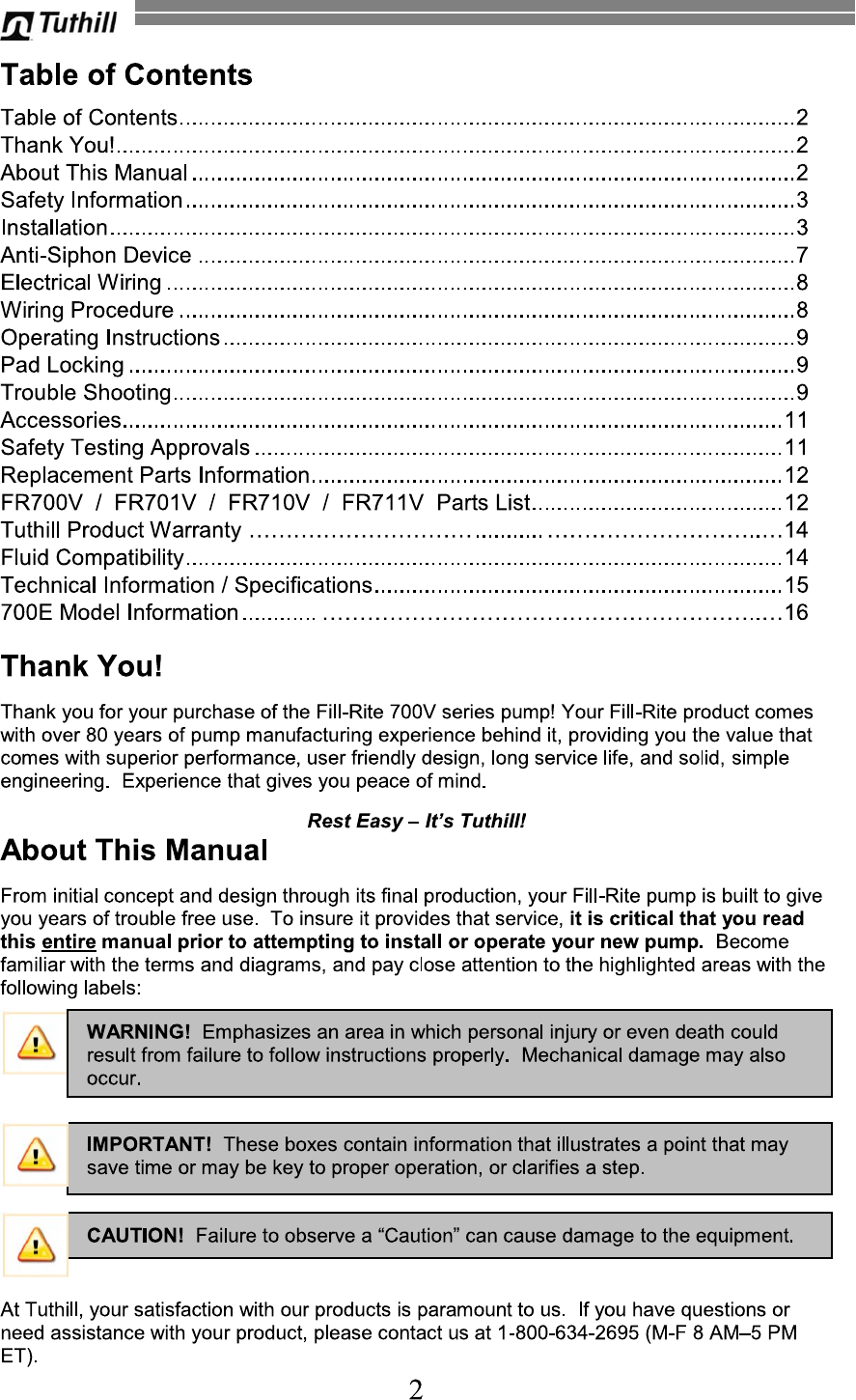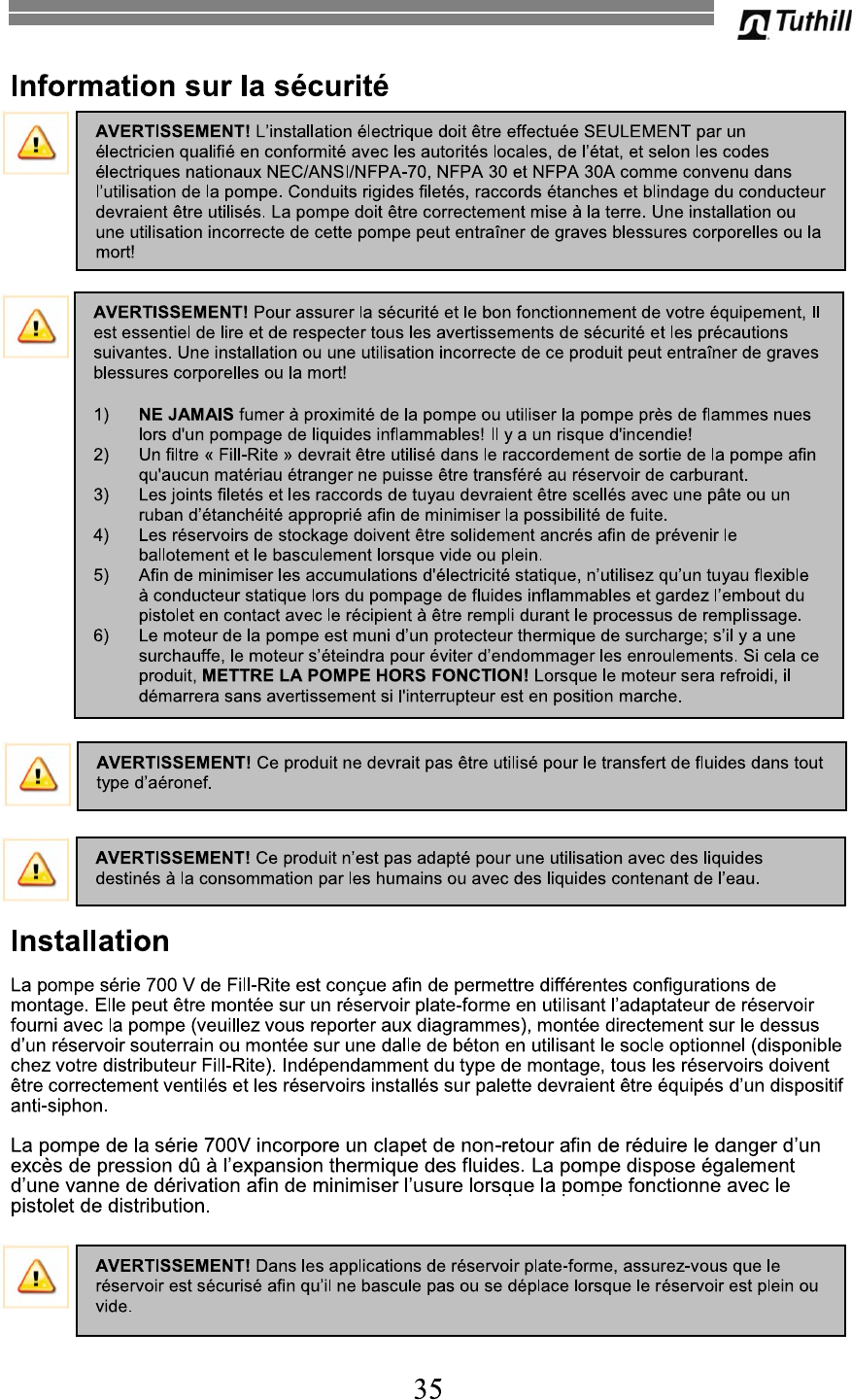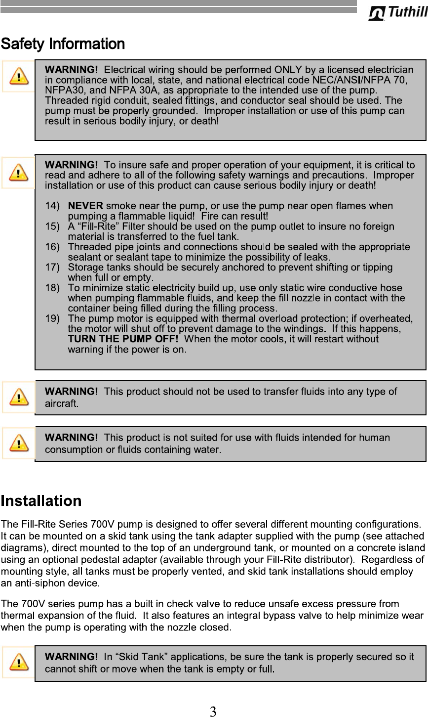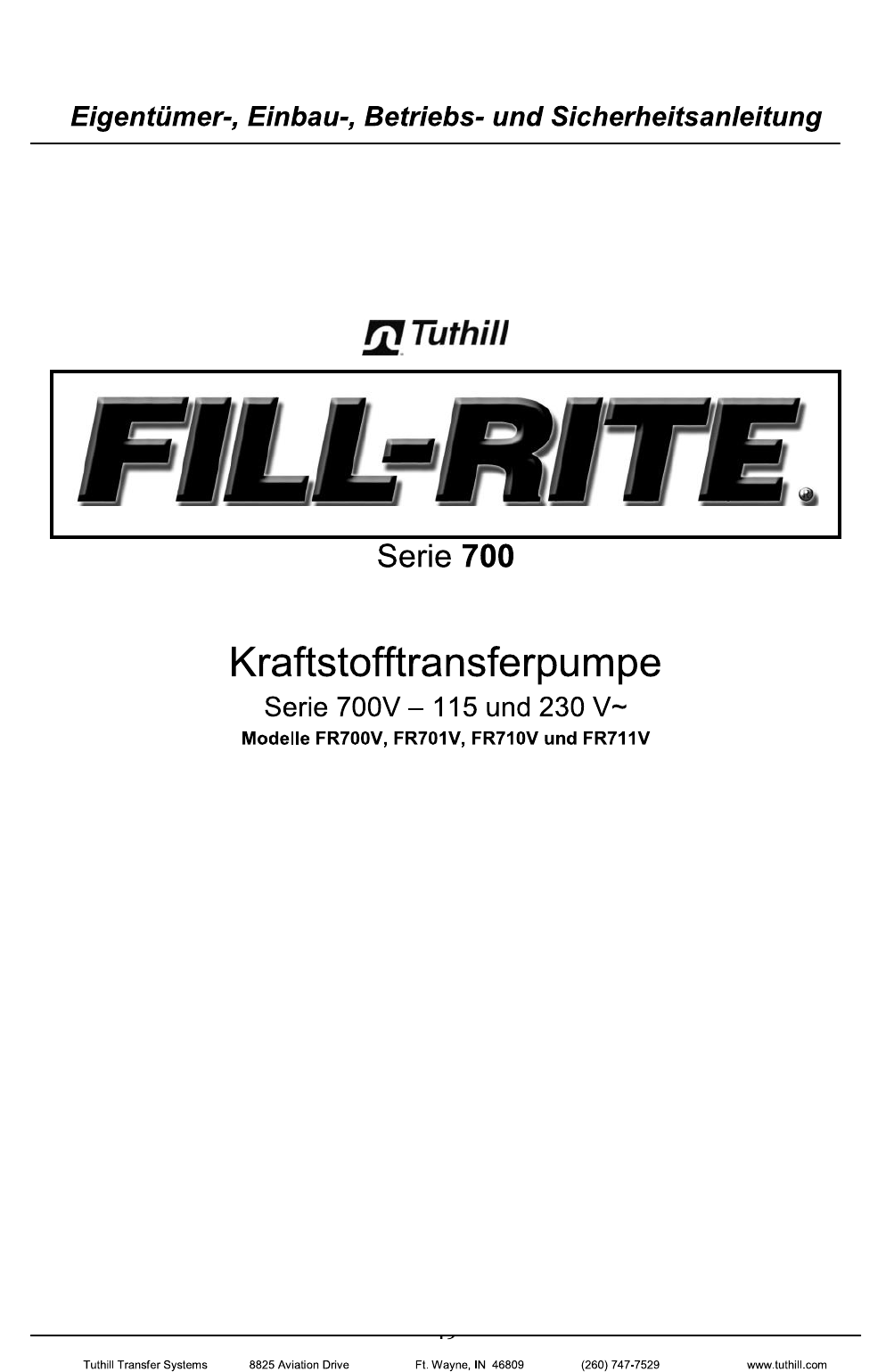 SmallManualSmallEN_...DE Rev 3 11 14 2013 552030 2 Fill Rite FR701V AC Fuel Transfer Pump 115VAC Installation Instructions