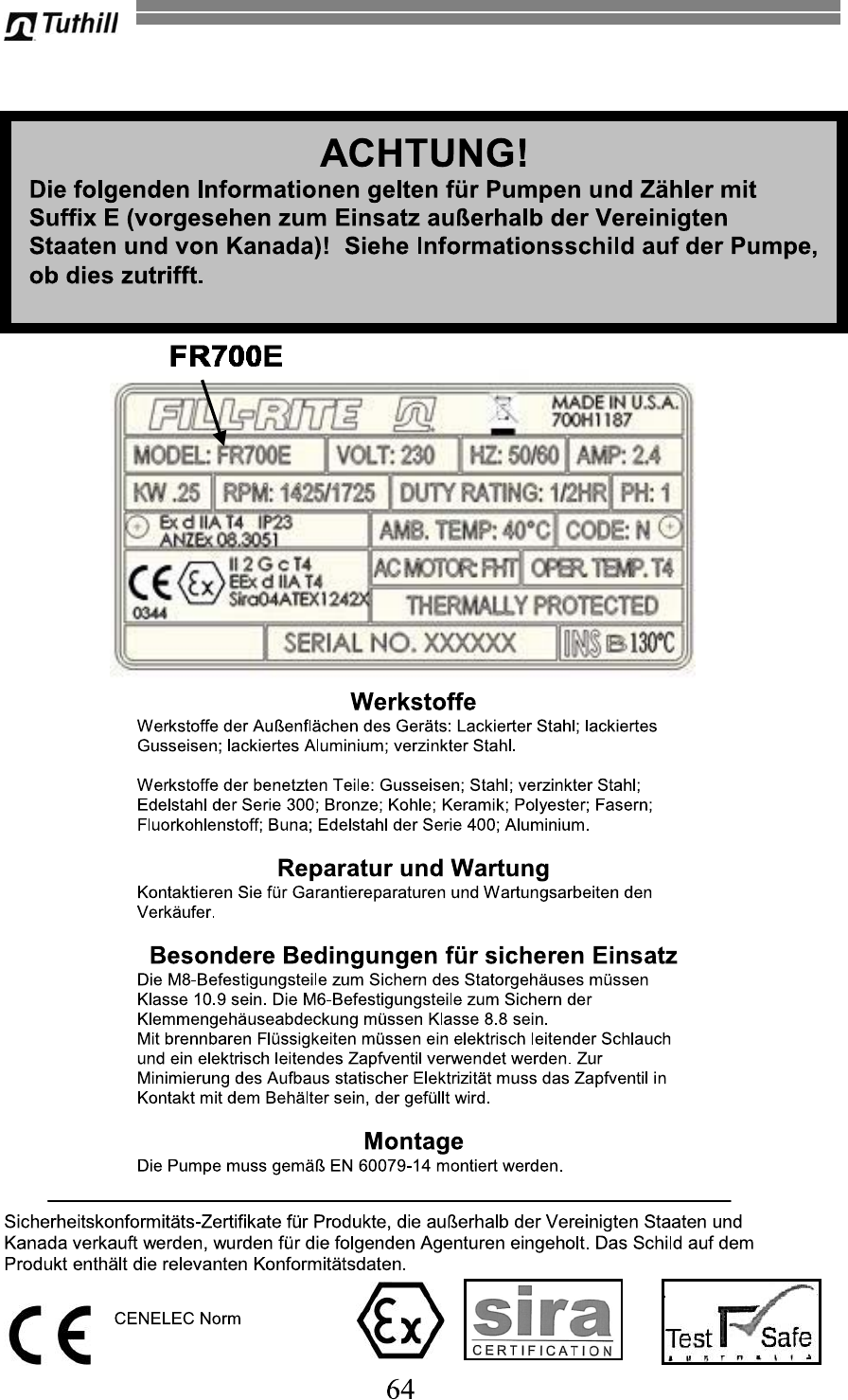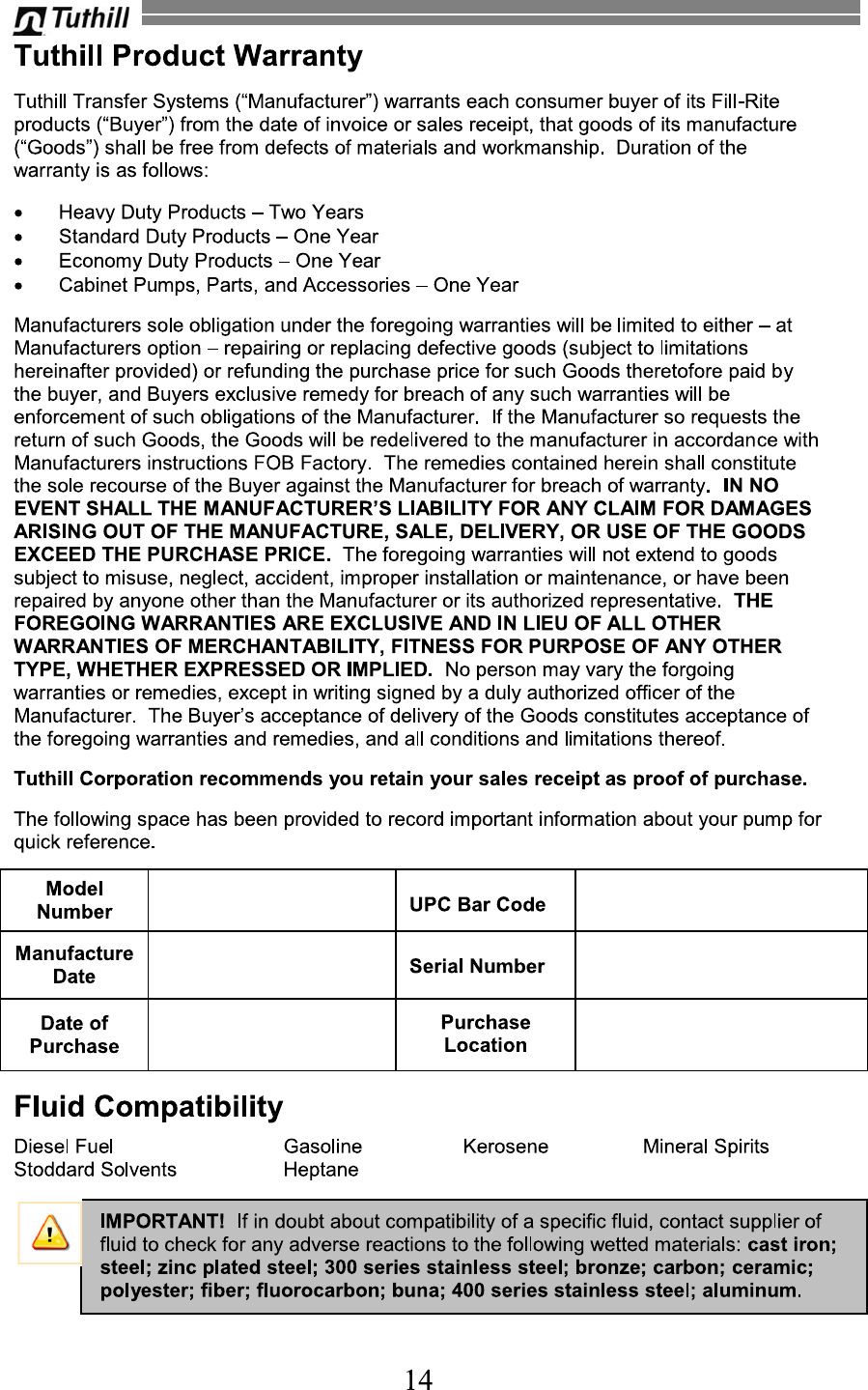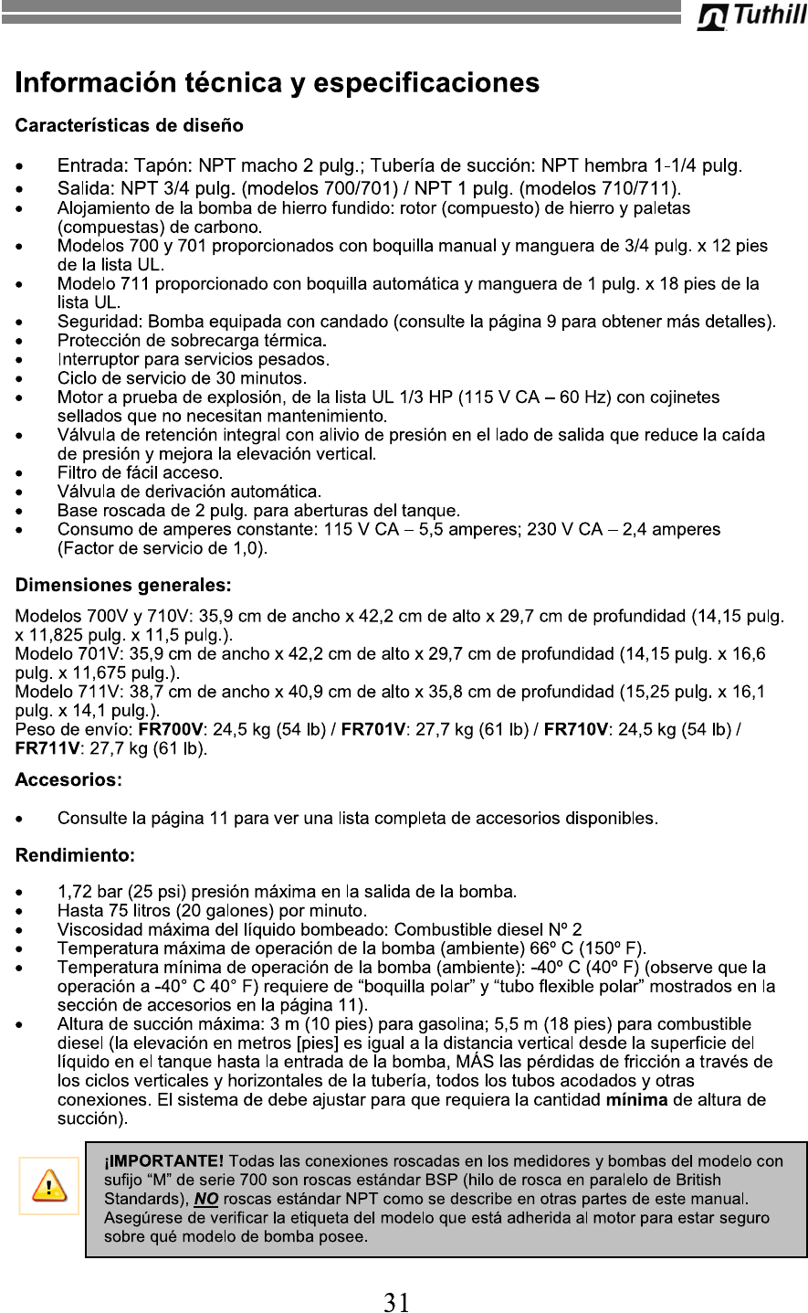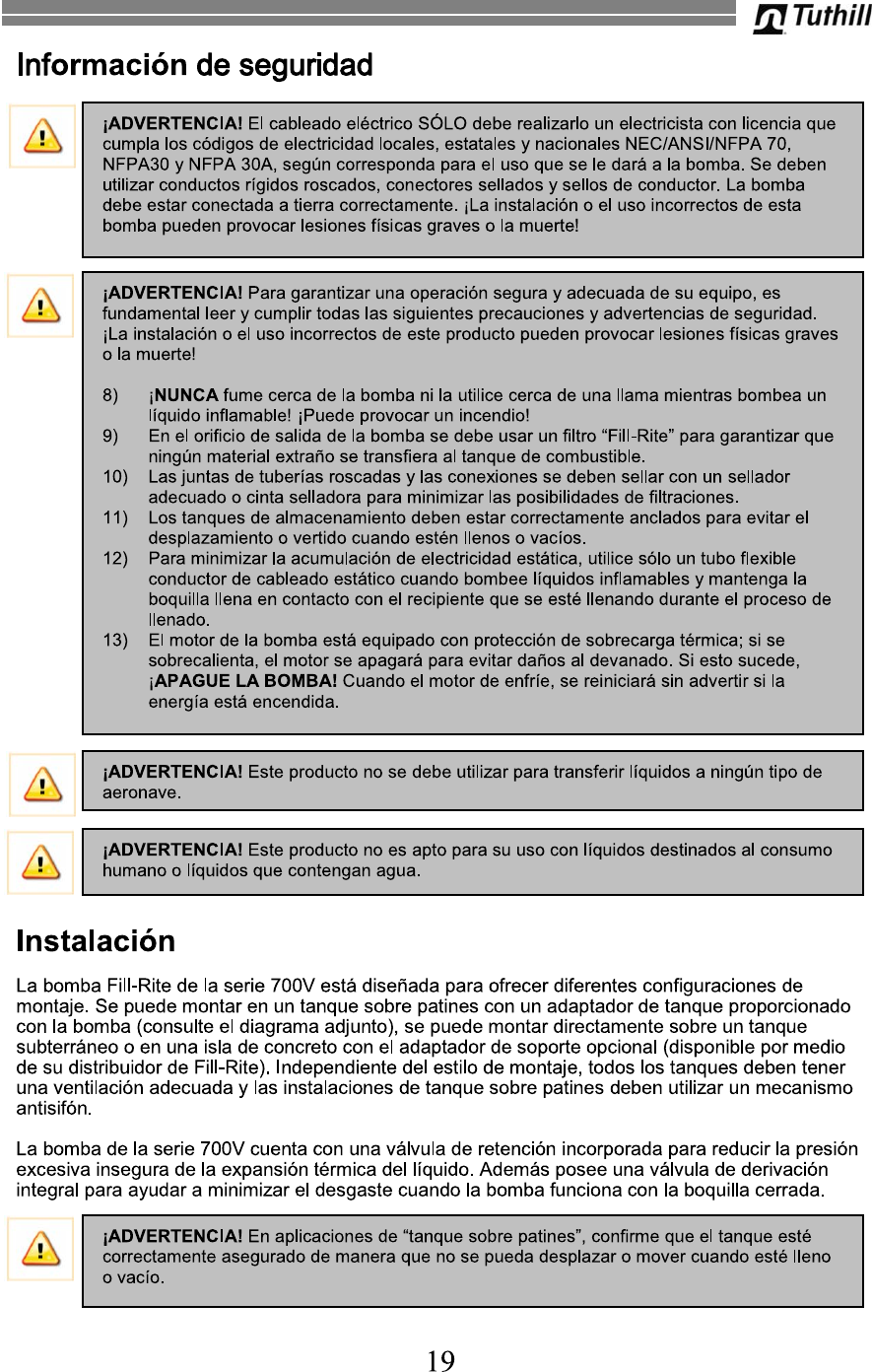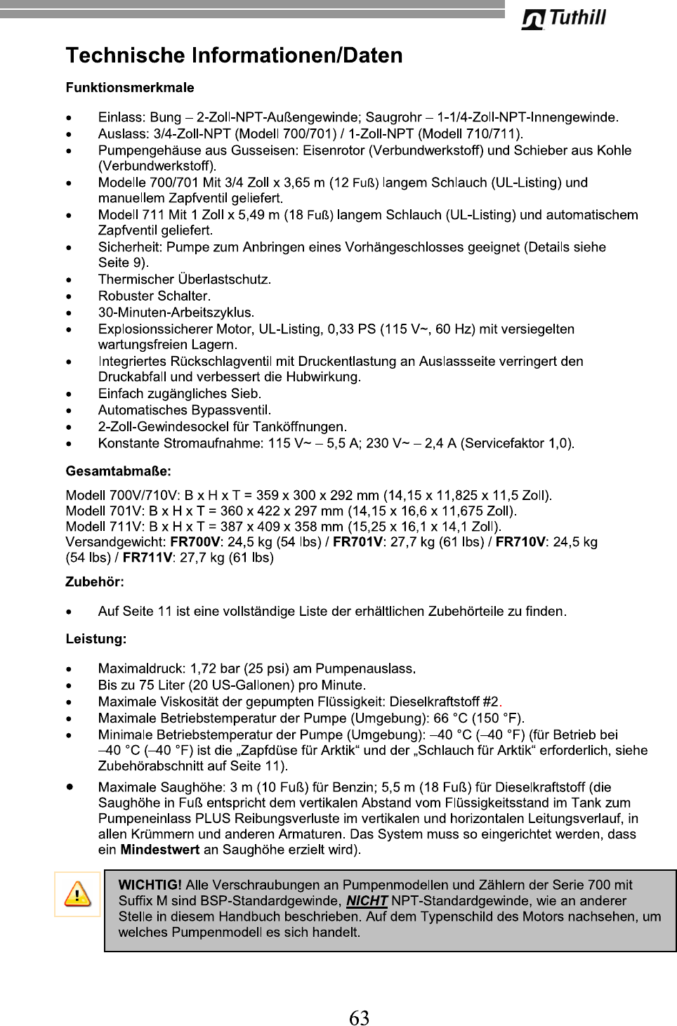 SmallManualSmallEN_...DE Rev 3 11 14 2013 552030 2 Fill Rite FR701V AC Fuel Transfer Pump 115VAC Installation Instructions
