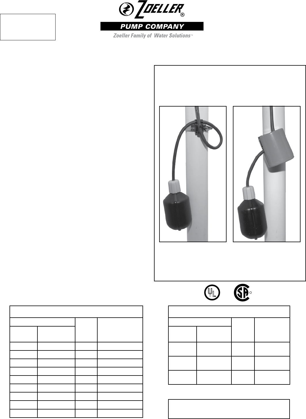 User Manual: Pump 552859 1 Zoeller Variable Control Switch Brochure