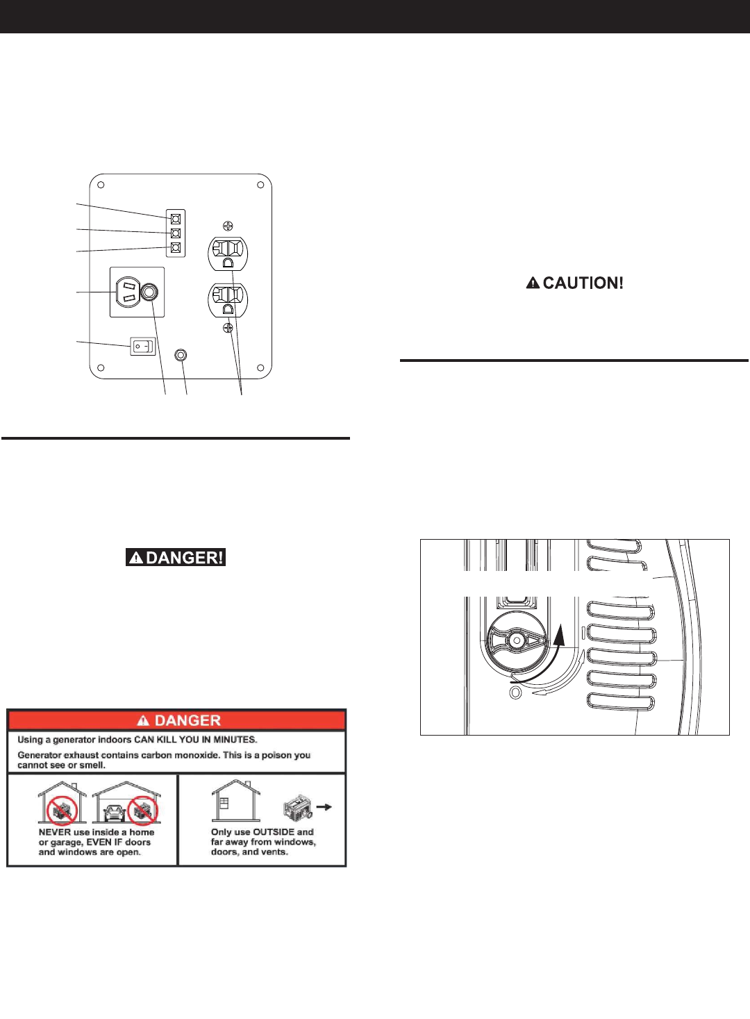 generator, DANGER, WARNING, CAUTION and NOTE blocks are
