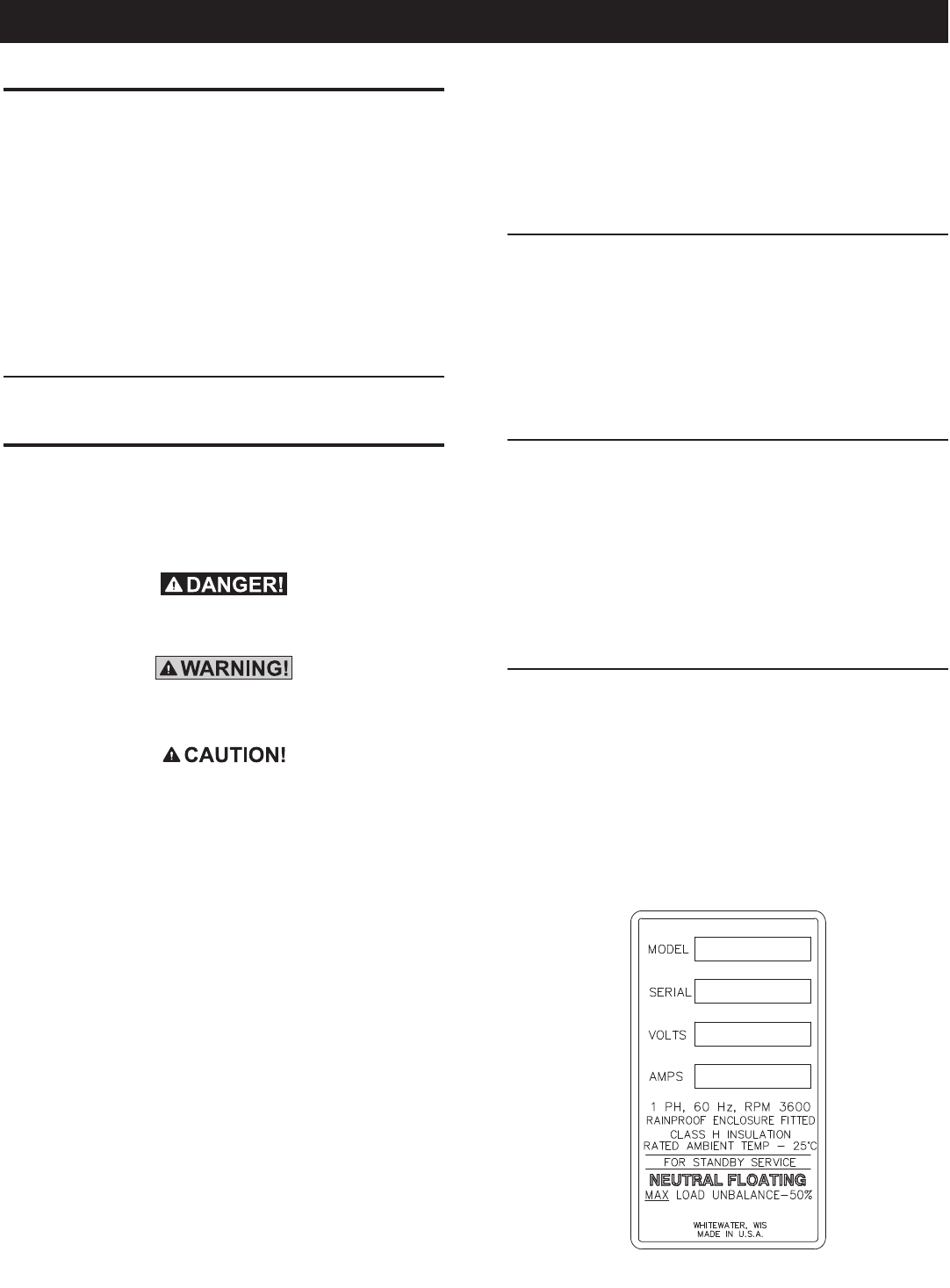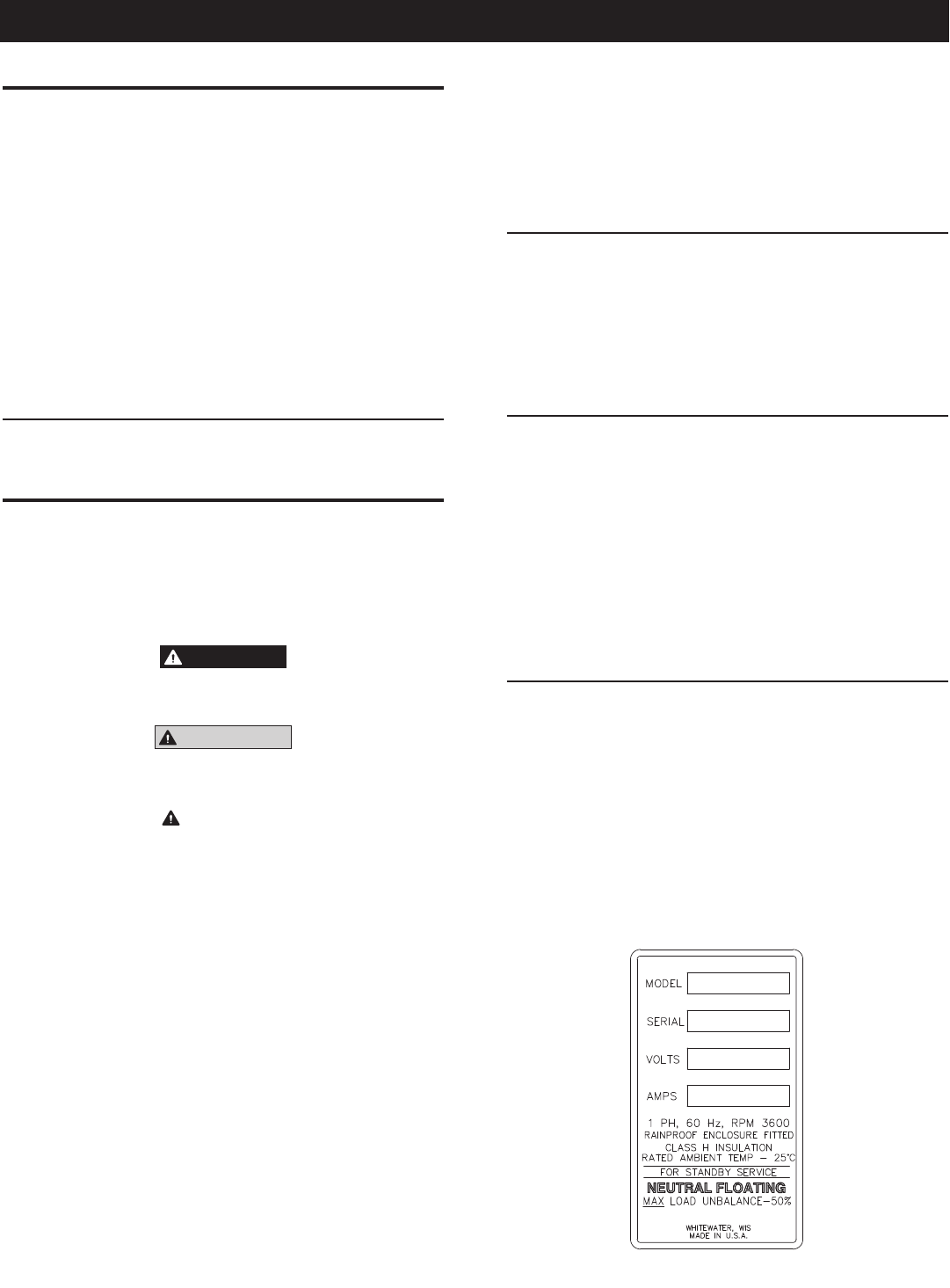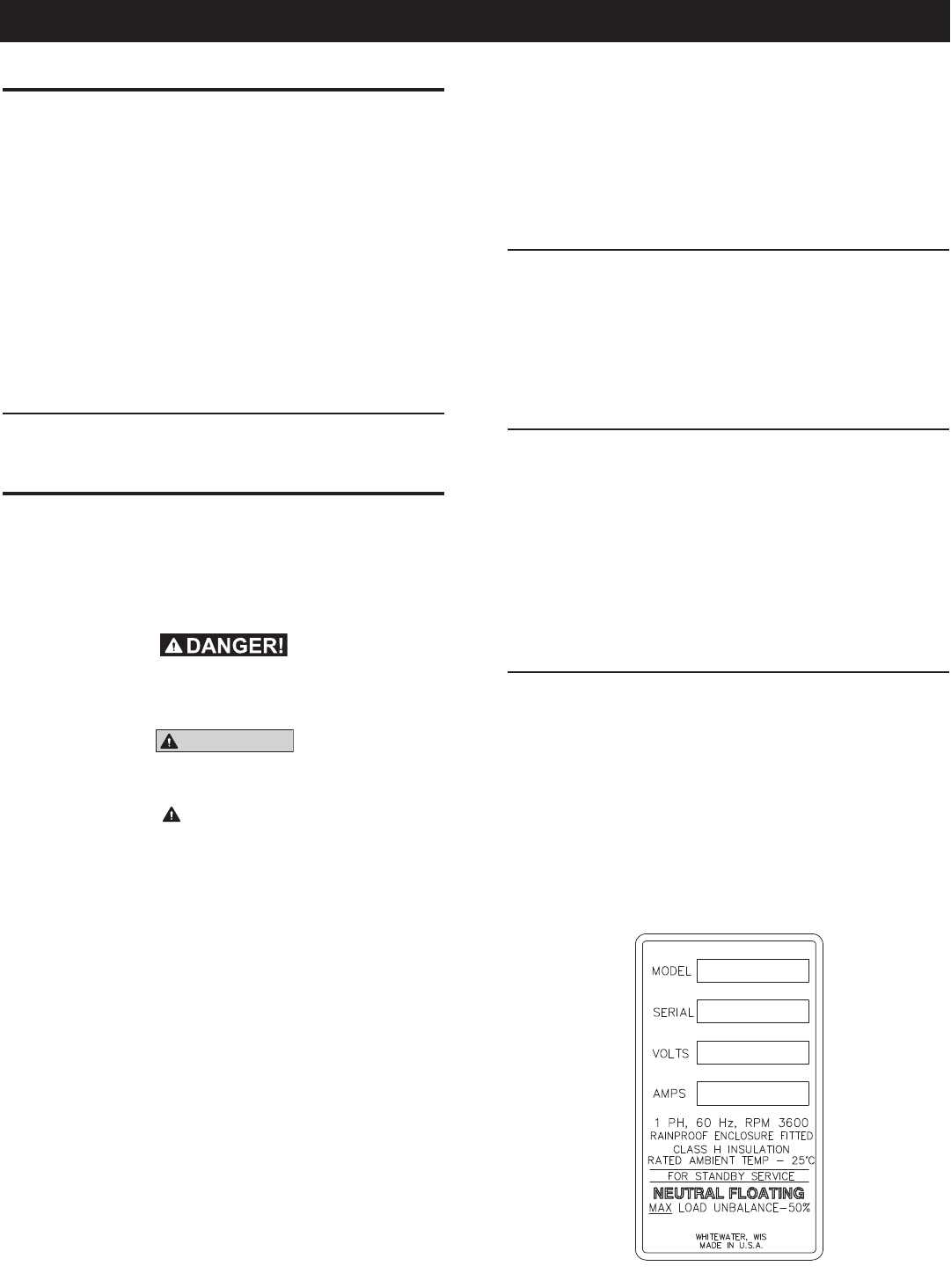 Generac. Une session de service de garantie / maintenance planifiée peut être organisée en contactant votre concessionnaire ou