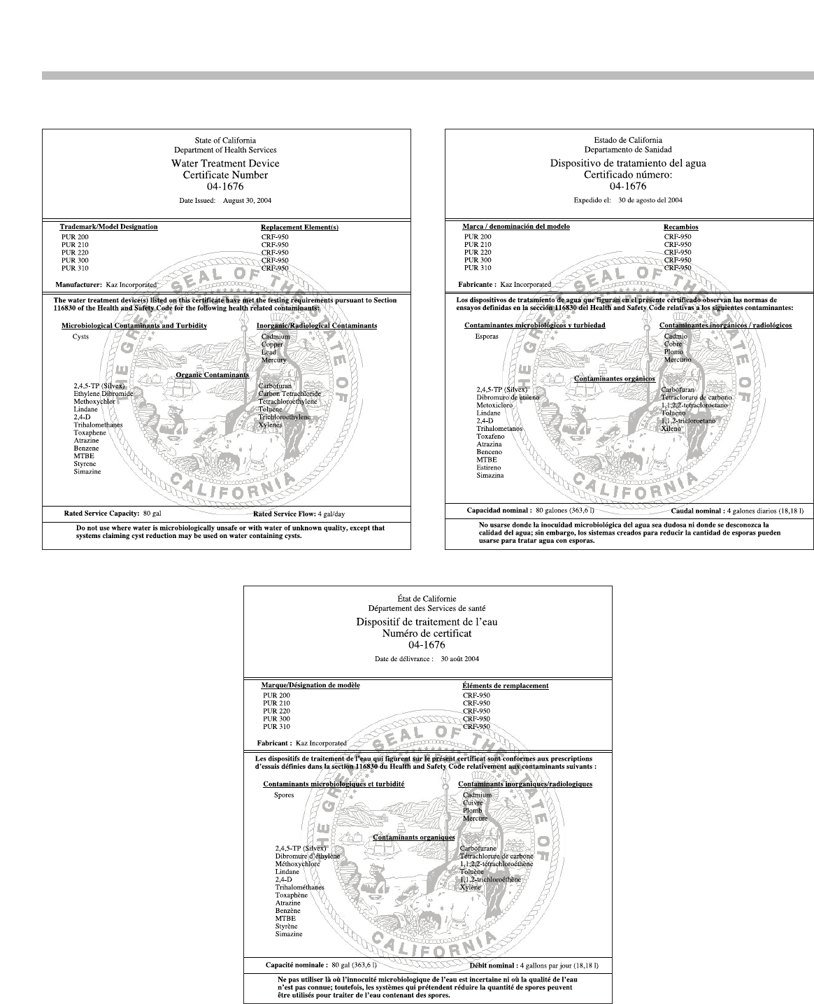 Pour communiquer avec nous : 1-800-447-0457 ou www.purwater.com