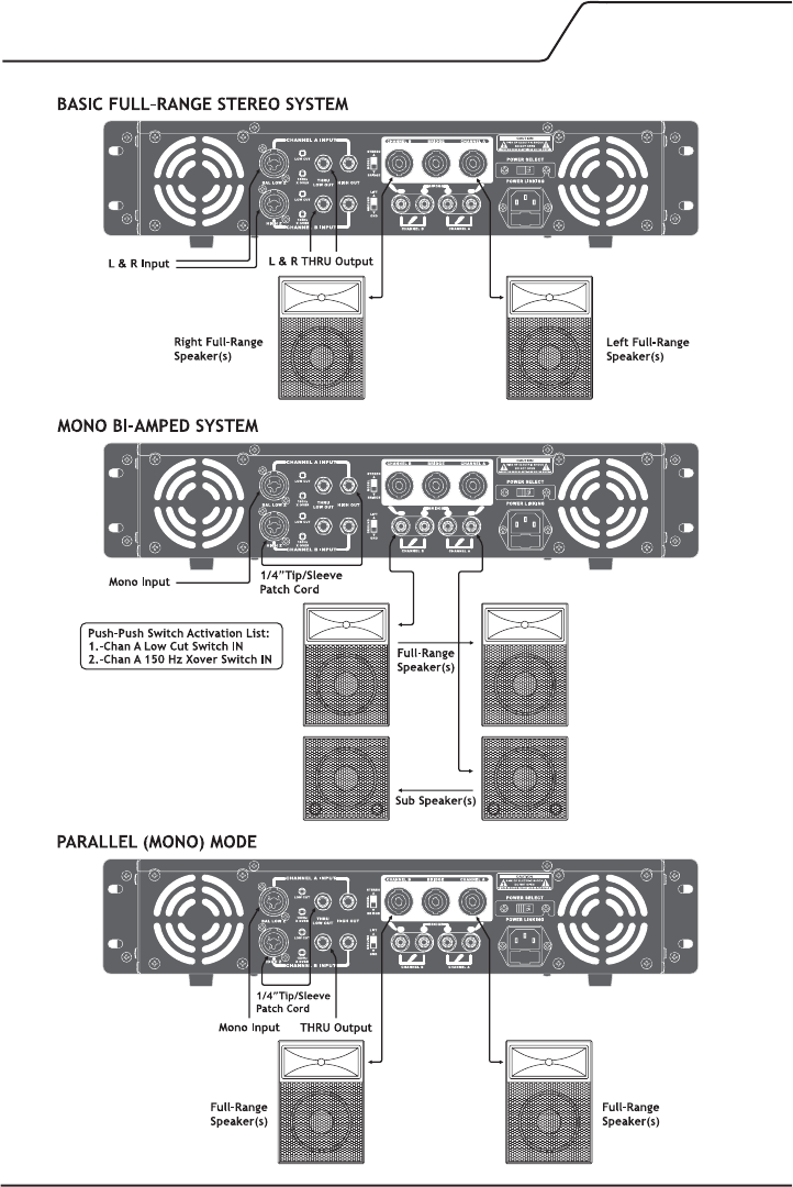 activated crossover for patching to this amplifier and/or additional power amplifier inputs. Unlike the