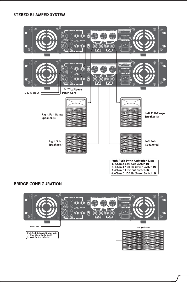 thus achieving awesome performance levels into 4 Ohms in BRIDGE mode. The amplifiers are