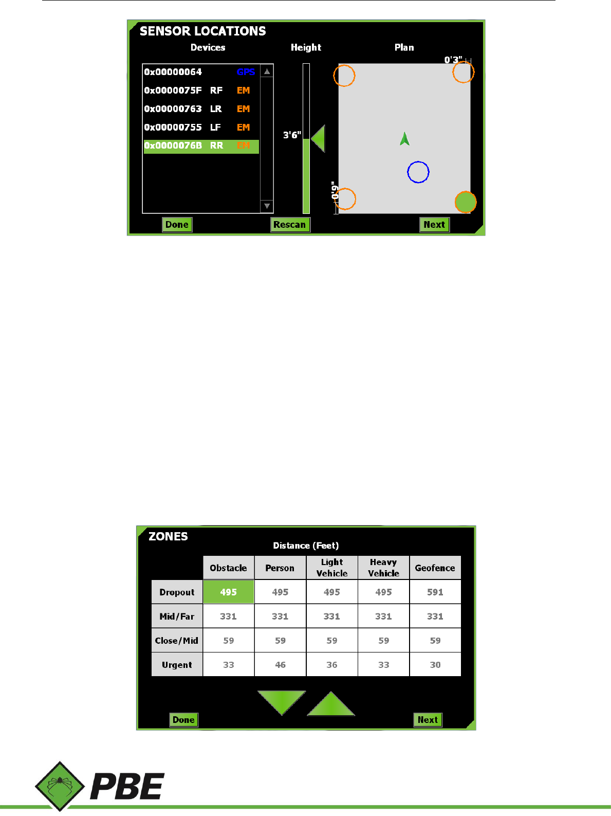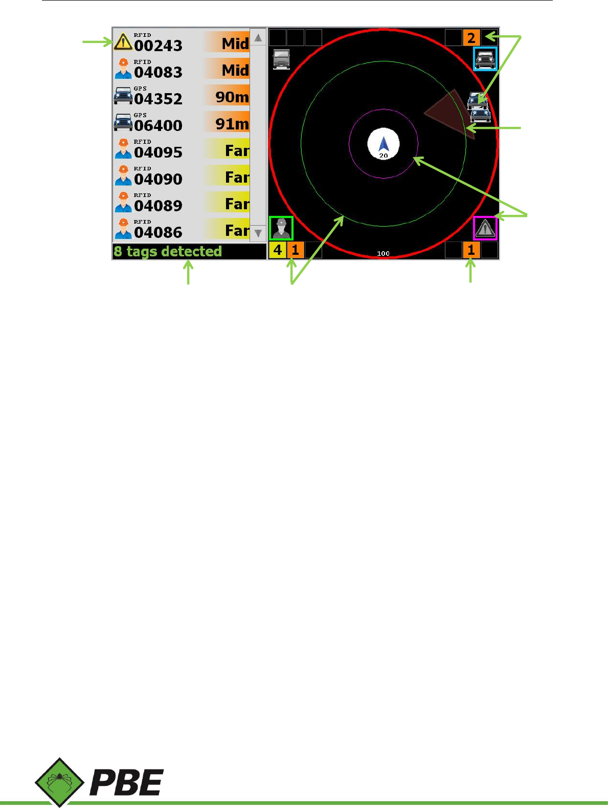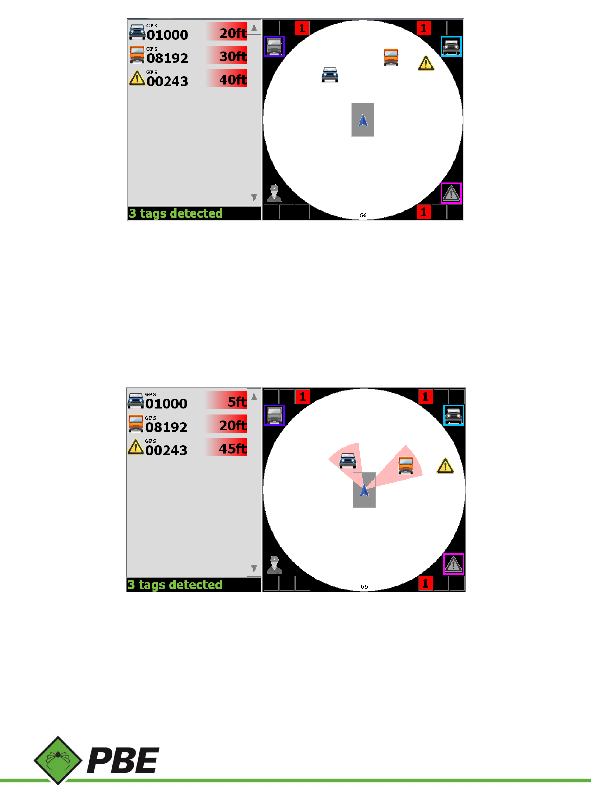 Figure 26 shows three tagged objects detected in the Close zone, two of which are within the urgent zone (represented