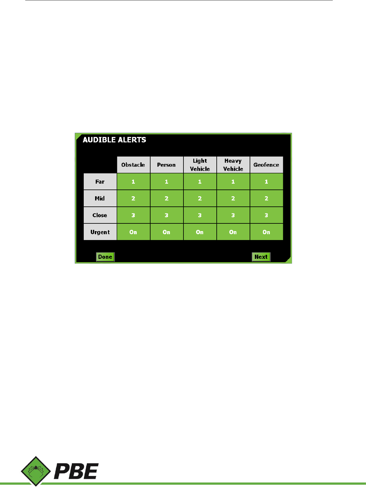 When objects enter the Urgent zone, the driver is alerted in several ways; an alarm is sounded, the objects are