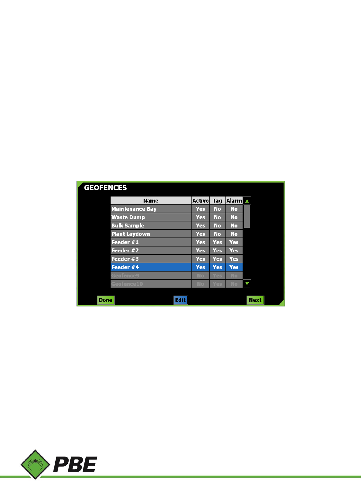 A geofence alarm may sound if inside the perimeter of a geofence which has the alarm enabled. The operator may