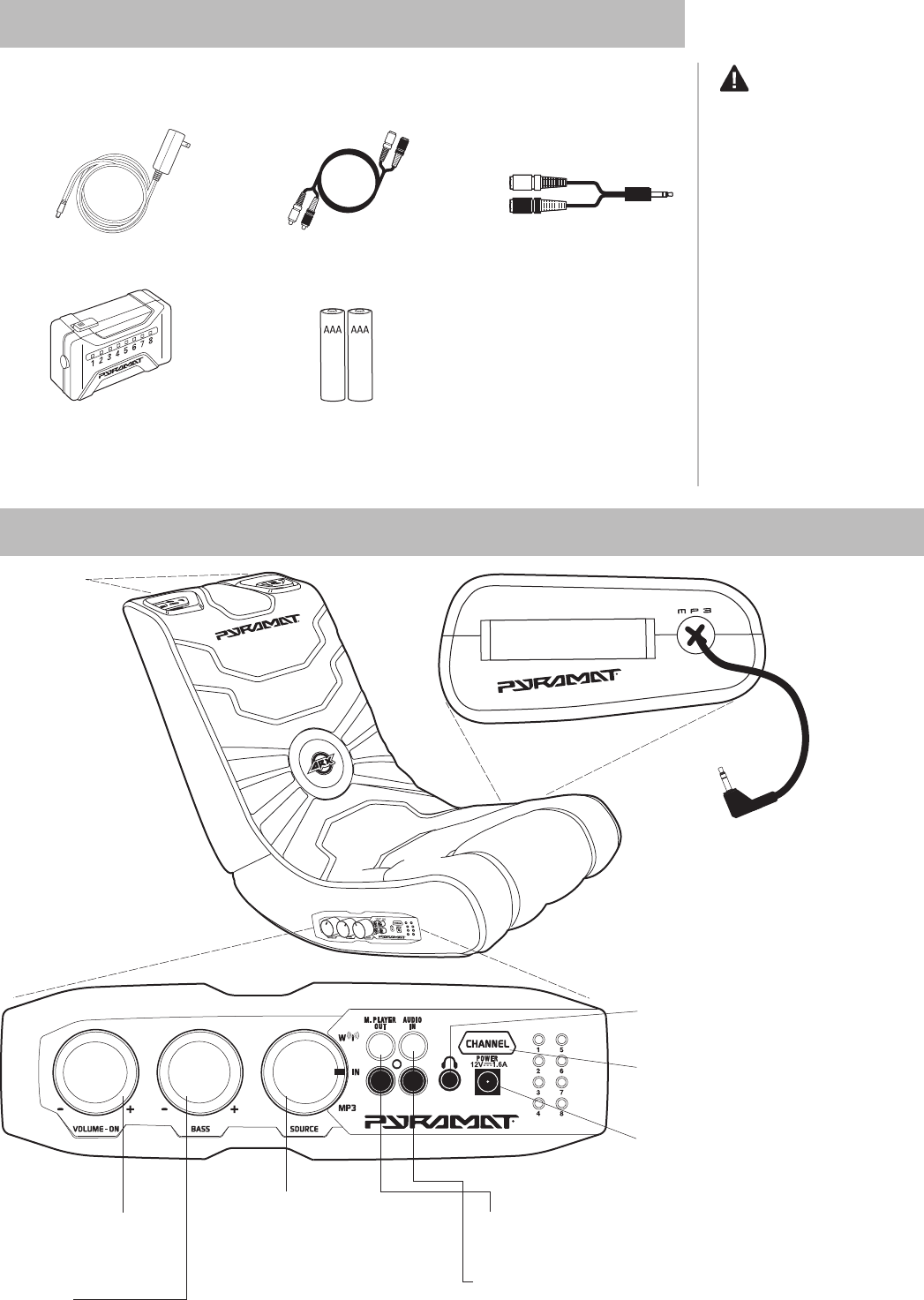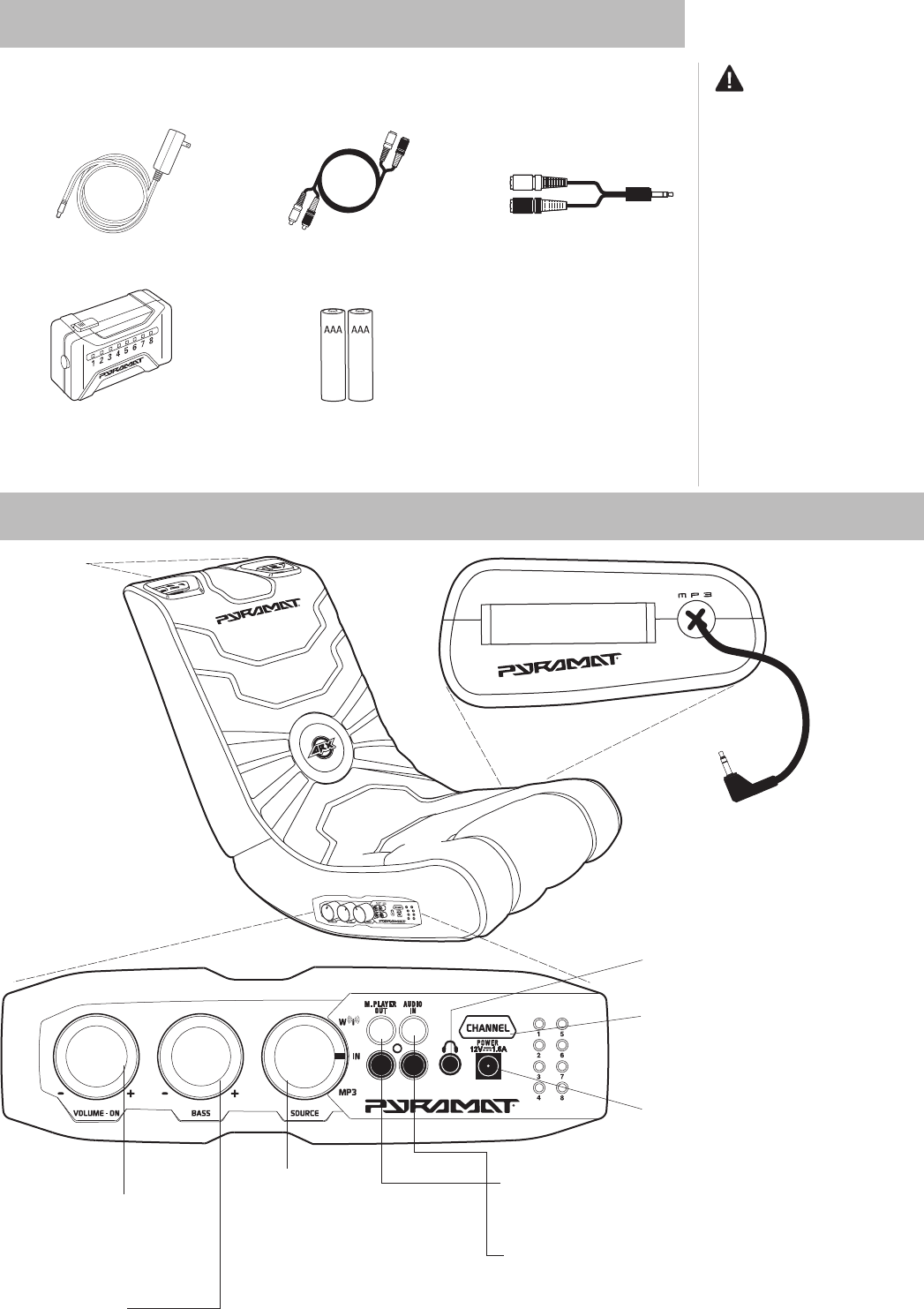 WARNING: The Pyramat Sound Rocker is intended for indoor use only. TO REDUCE THE RISK OF FIRE OR