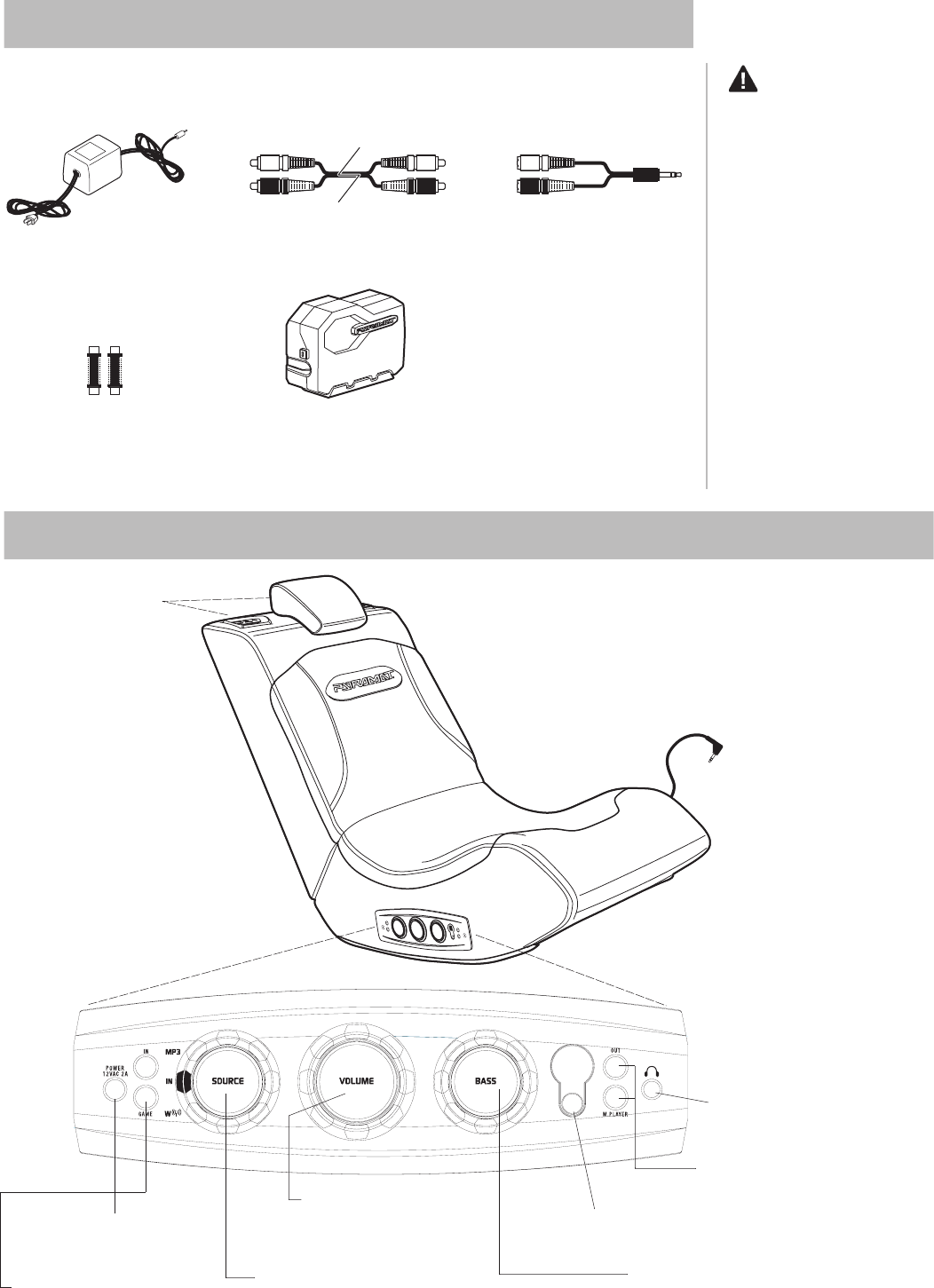 • DO NOT wash or soak the Sound Rocker with water. If cover becomes wet, disconnect power immediately and